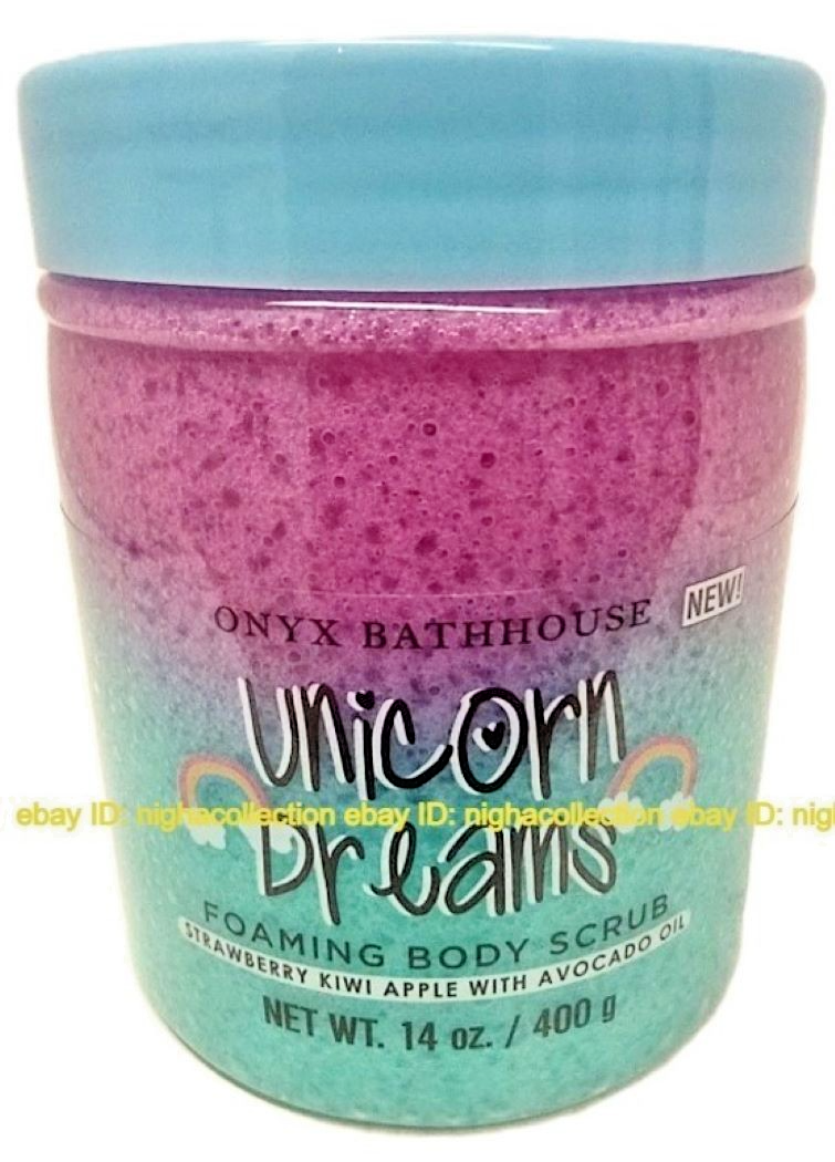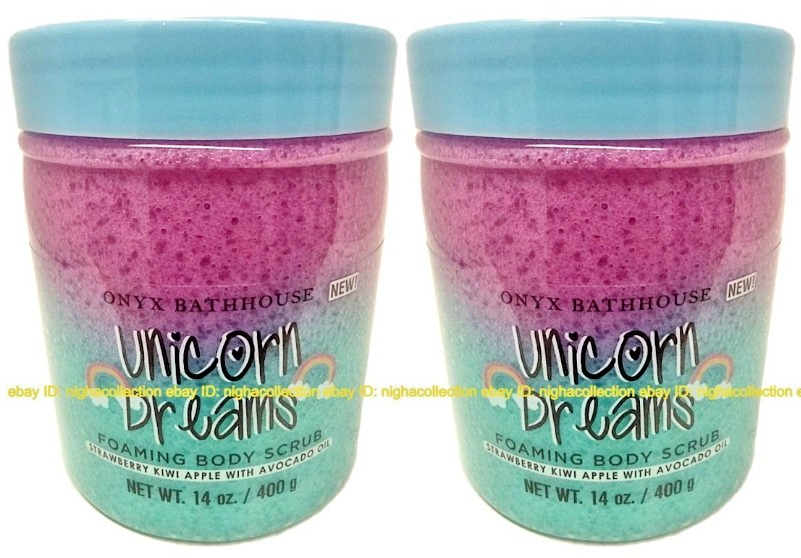 - 2x Onyx Bathhouse UNICORN DREAMS Foaming Body Scrub S.K.Apple w/AVOCADO OIL 14oz