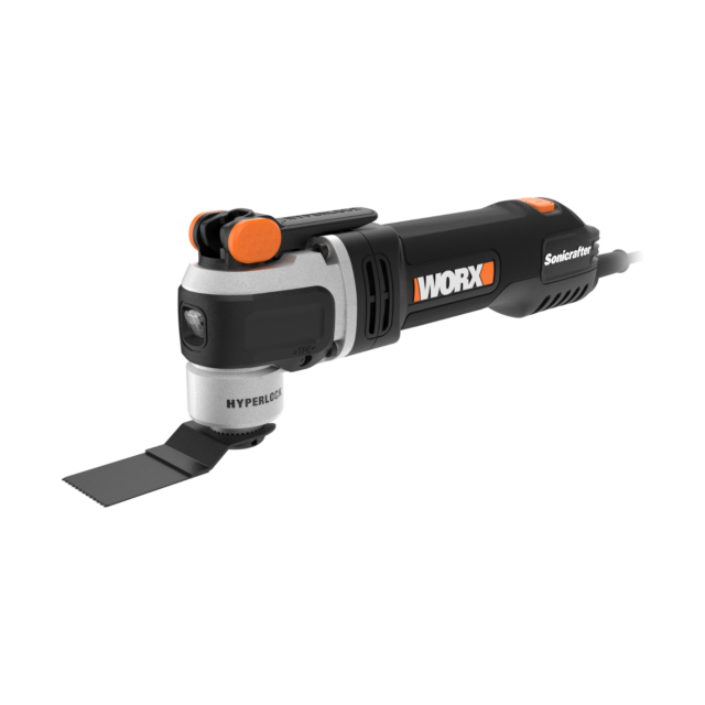 Details 4 oscillation angle results in 3x faster cutting than tools with a standard 3.2 oscillation angle. Universal Fit interface works with all major brands of accessories. Tool-free Hyperlock clamping system eliminates accessory slippage. 3.5-Amp motor maintains speed of cut under load. Ergonomic slim grip body is comfortable and easy to control. LED Light illuminates the work area for better visibility than traditional corded oscillating tools. Variable speed motor ensures best results in all materials. Do It Yourself. Do It Better. Do It With Worx. ? Worx tools are engineered with cutting-edge technology, and above modern efficiency standards, so you can build a cost-effective tool collection that?s been designed to last. Read More Owner's Manual Power Input 3.5 Amp No-Load Speed 11,000 - 20,000 RPM Oscillation Angle 4 Machine Weight 3.1 lbs. (1) - Sonicrafter Corded Oscillating Multi-Tool (1) - 1 3/8 in. Wood-Cutting Blade (1) - Rigid Scraper (1) - Sanding Pad (26) - Assorted Sanding Sheets (1) - Carry Bag