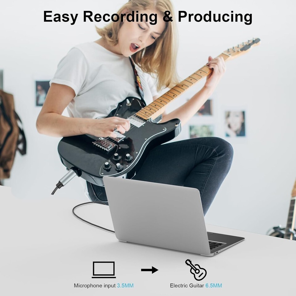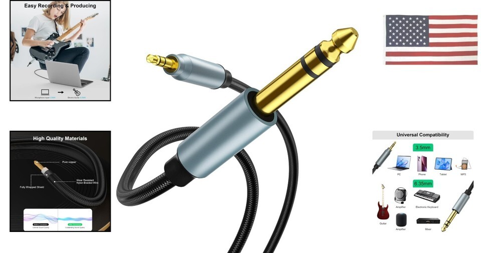 Plug and Play: Effortlessly connects smartphones, tablets, iPods, or headphones with a 3.5mm port to audio devices featuring a 6.35mm stereo port, such as keyboards, guitars, amplifiers, and headphones.