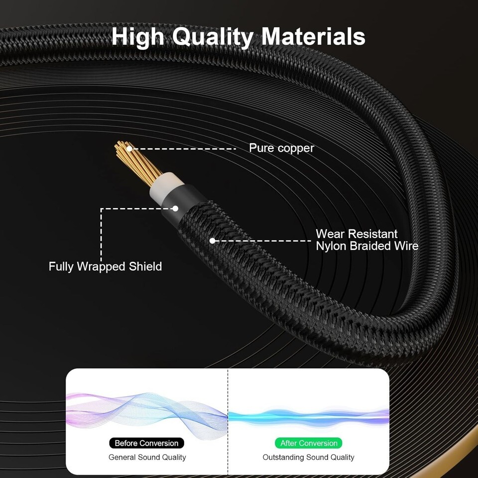 Hi-Fi Sound Quality: Experience superb audio with 24K gold-plated connectors and double-shielded wires that deliver optimal signal transmission for a lossless, noise-free, high-fidelity audio experience.