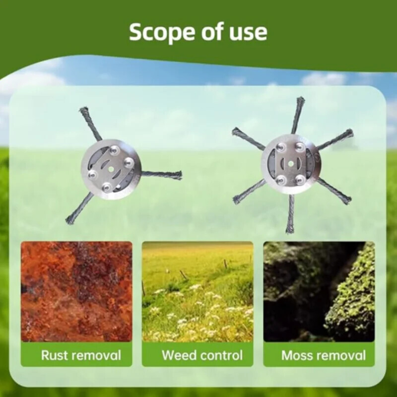 ?Versatile Applications?Ideal for a variety of outdoor tasks, this Steel Wire Grass Trimmer Head efficiently removes weeds from hard-to-reach corners, between bricks, sidewalks, and even sand and gravel. It's also effective for removing moss, rust, and weeds, making it perfect for gardens, courtyards, parking lots, and more.