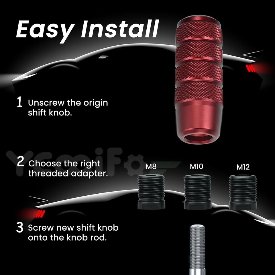Easy Installation: Simple process to switch out your old gear knob - simply select the correct thread adapter, install the rubber adapter onto your gear shift lever, and place the shifter head on top.