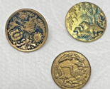Primary image for 3 Antique Round Metal Picture Buttons Butterfly / Bird w Flowers More Birds