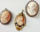3 ANTUQUE VINTAGE CARVED SHELL CAMEO PENDANTS SKY