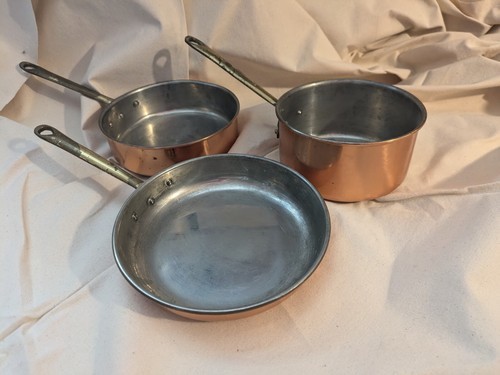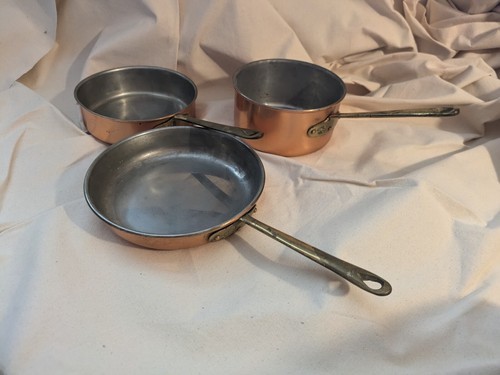 3 Copral Cuivre 7.5 8.5 Inch Saute Poêle 2 QT Théière Laiton Poignée Portugal