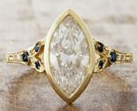 3 Cts Marquise Shape E/VS1 Lab Grown Diamond & Blue Sapphire Engagement Ring