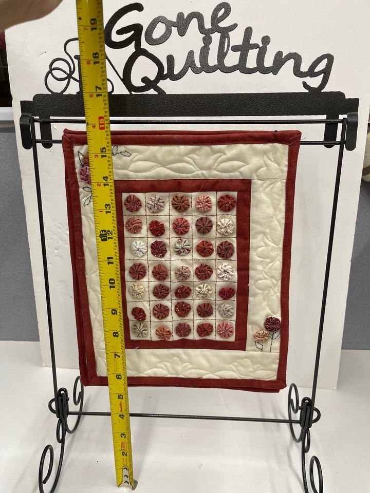 - 3 HANDMADE SMALL QUILTS DISPLAY ON HANGER "GONE QUILTING"