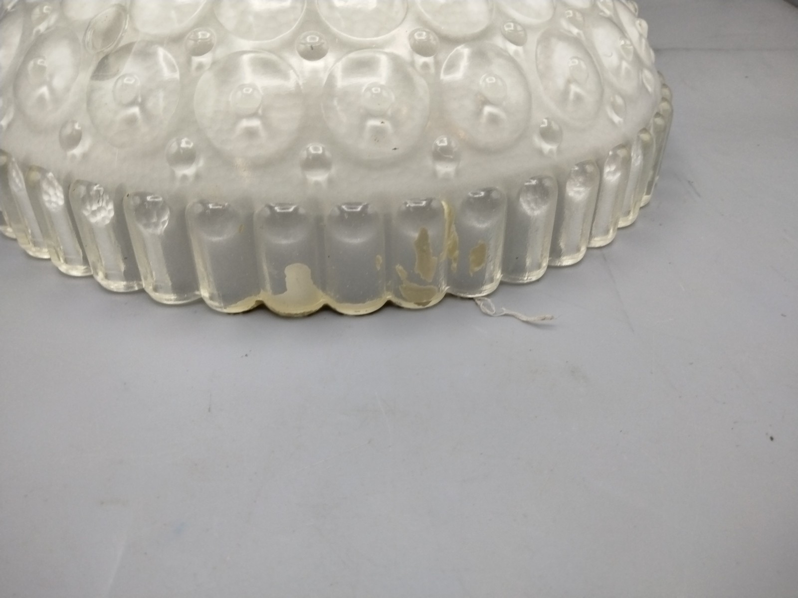 3 Hole Glass Ceiling Light Bubble Frosted Clear Shade 10" Vintage
