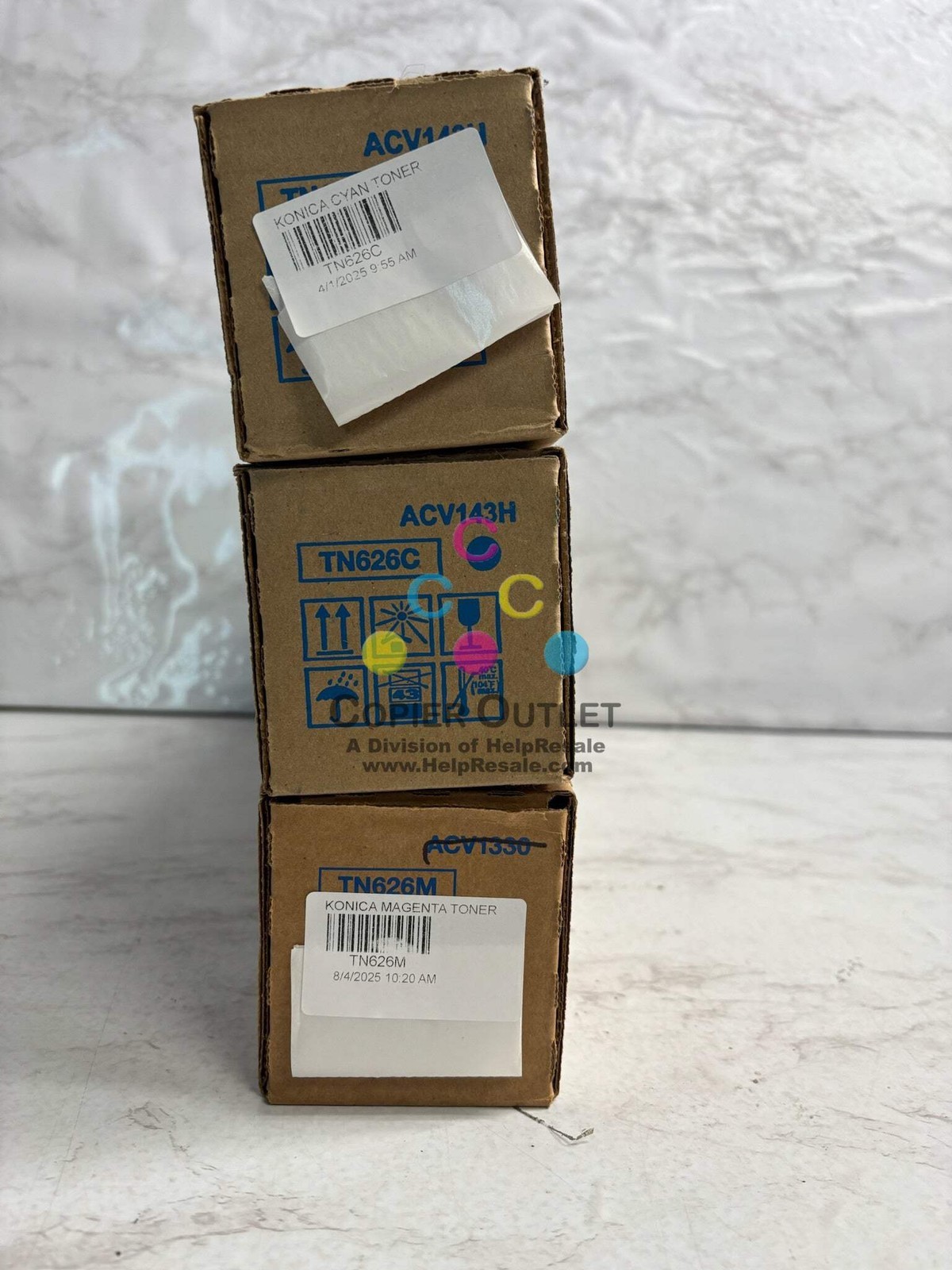 3 New Genuine Konica BH C360i,C450i CCM Low Yield Toners TN626 (No Yellow,Black)