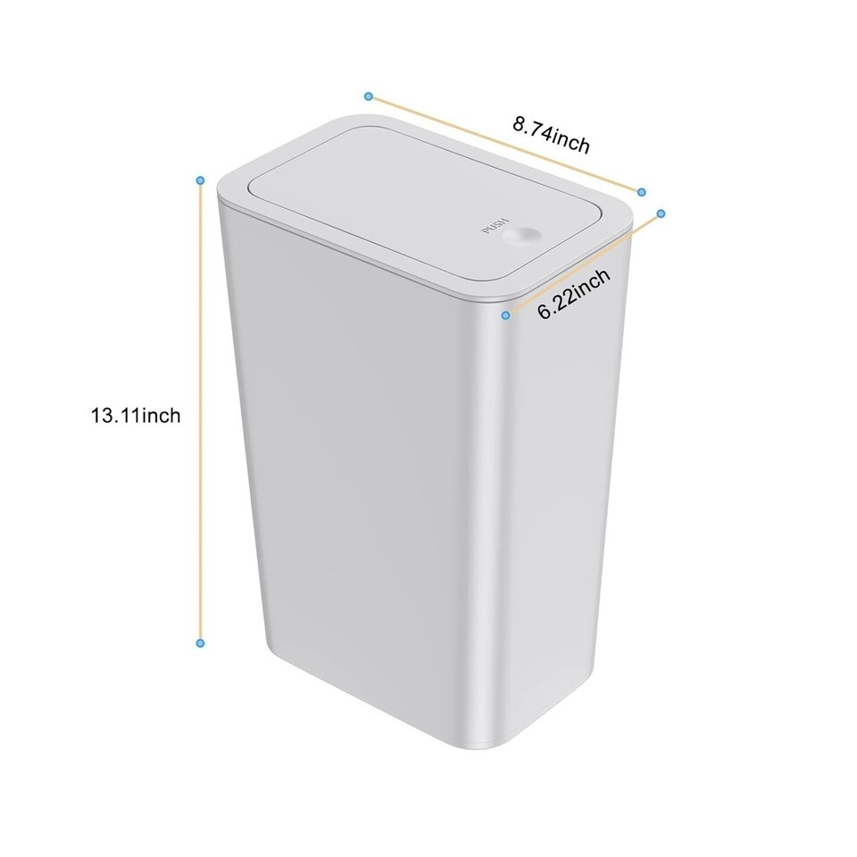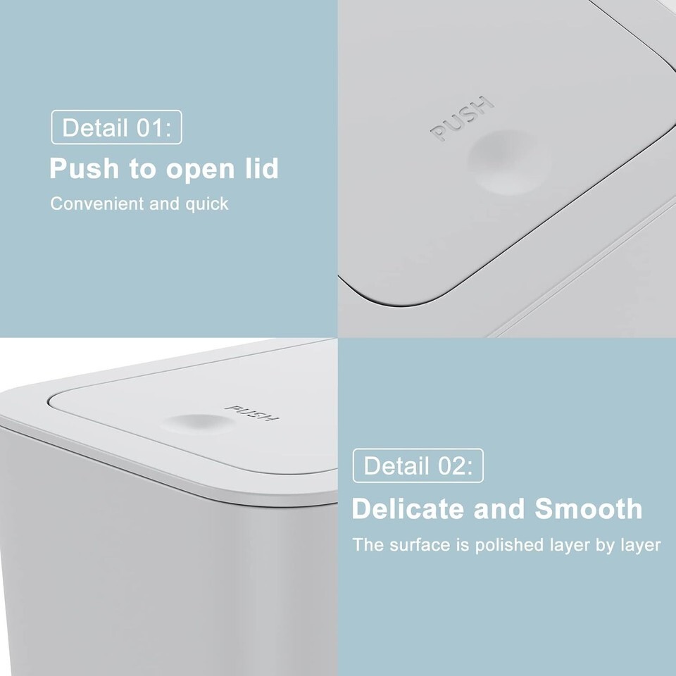 Pop-up Design Lid: With a simple tap of the button, the press-top lid opens and closes with ease, ensuring discreet waste disposal while keeping odors contained.