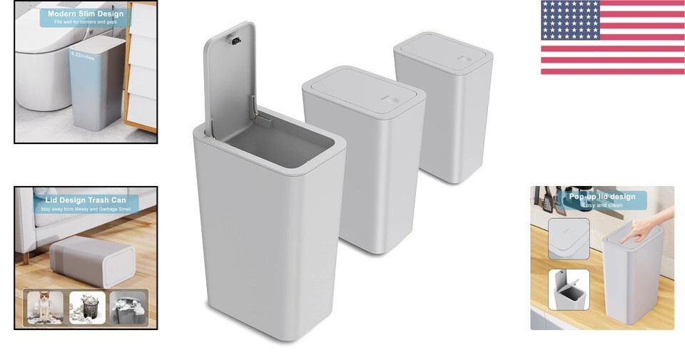 Don?t let clutter overwhelm your space. Embrace the modern solution to waste disposal today - get your 3-Pack Gray Bathroom Trash Can, and elevate every room's aesthetic while keeping it tidy!