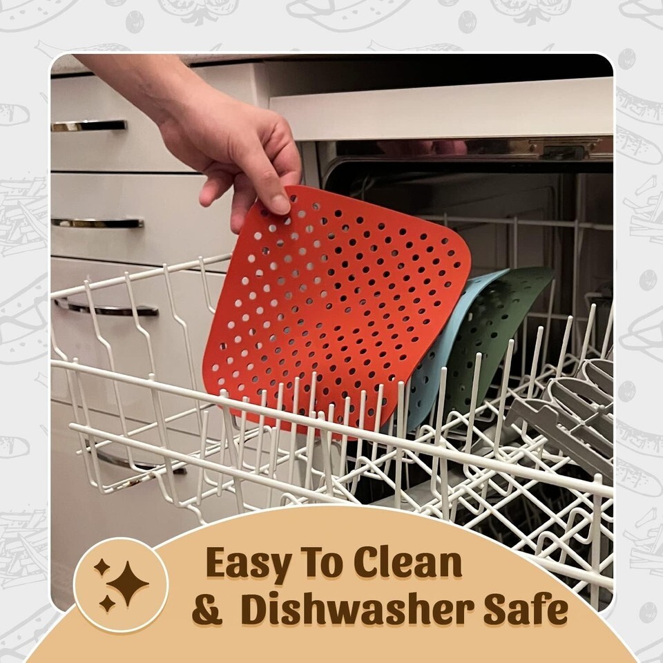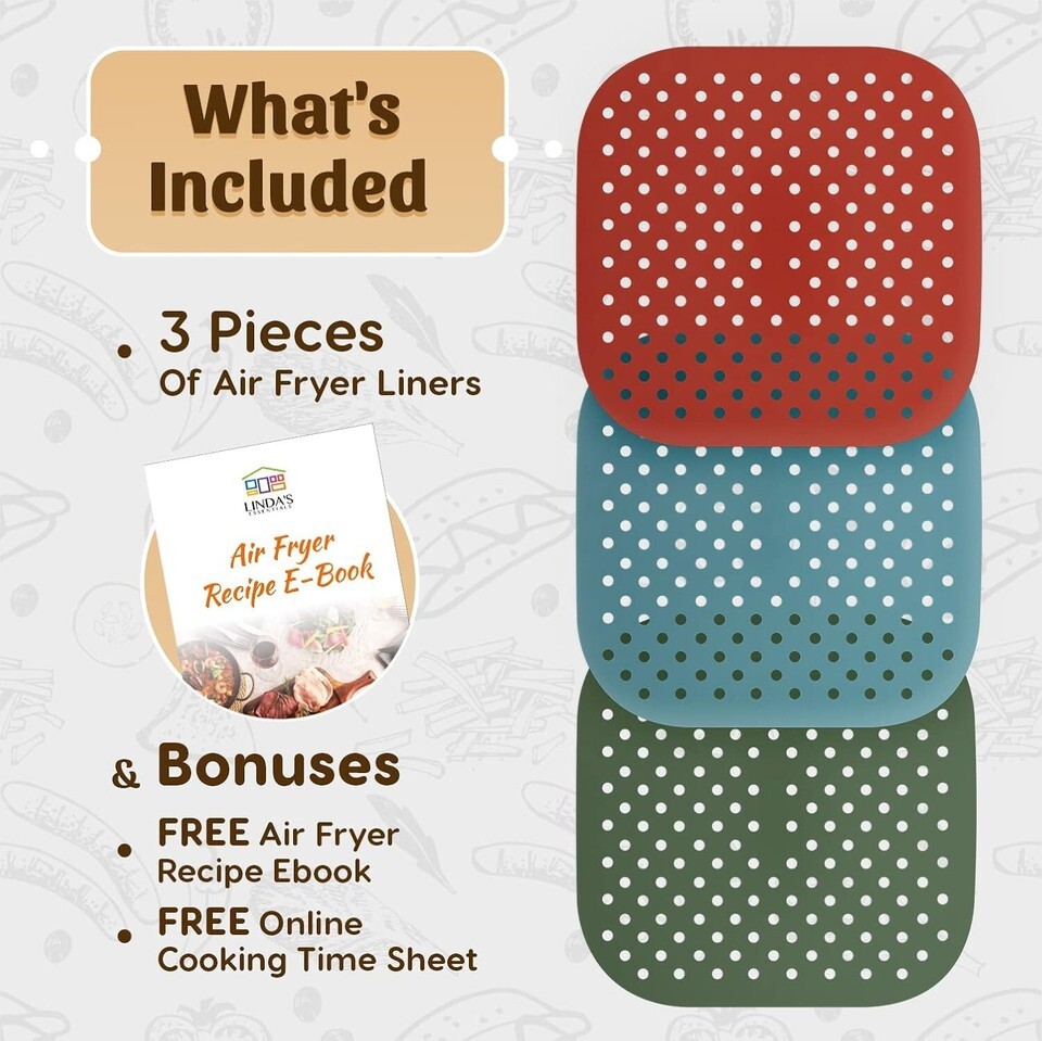 3-Pack Silicone Air Fryer Liners - 7.5'' Square with Cheat Sheet and Recipes