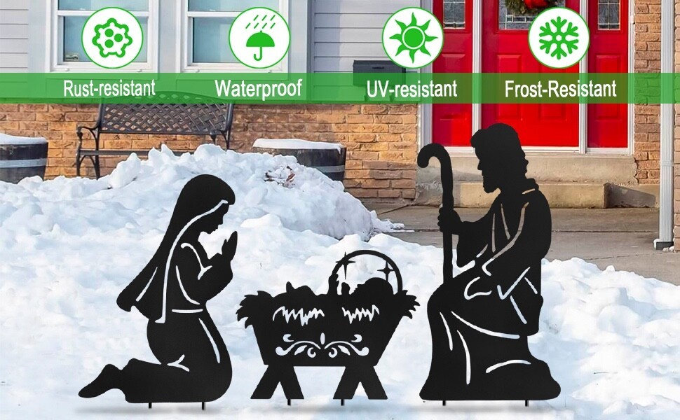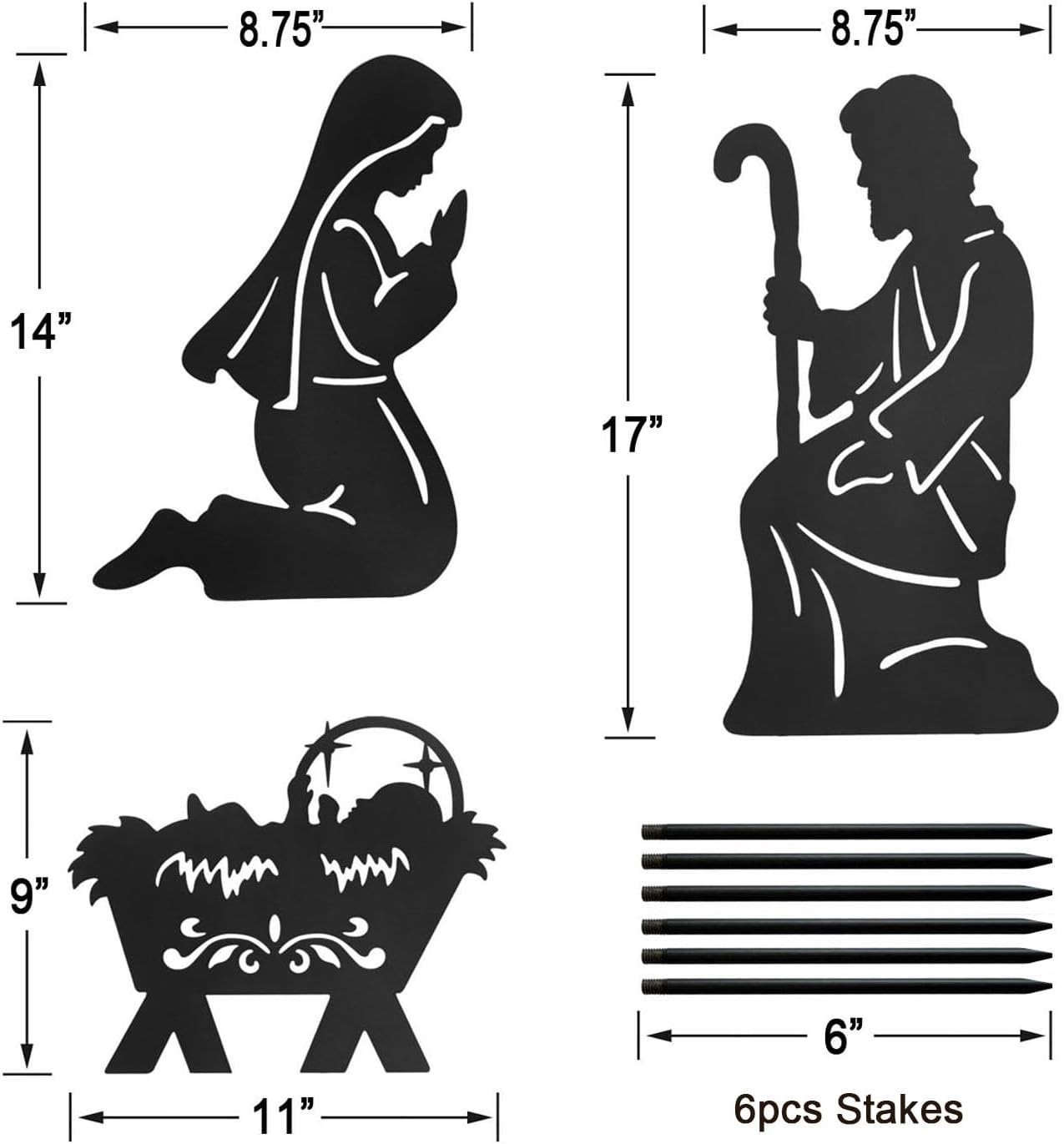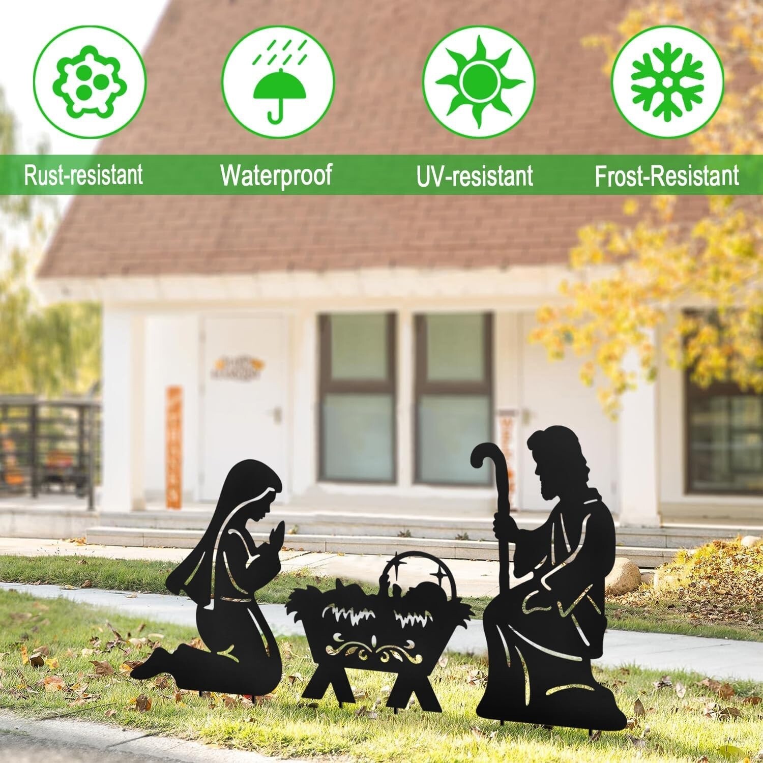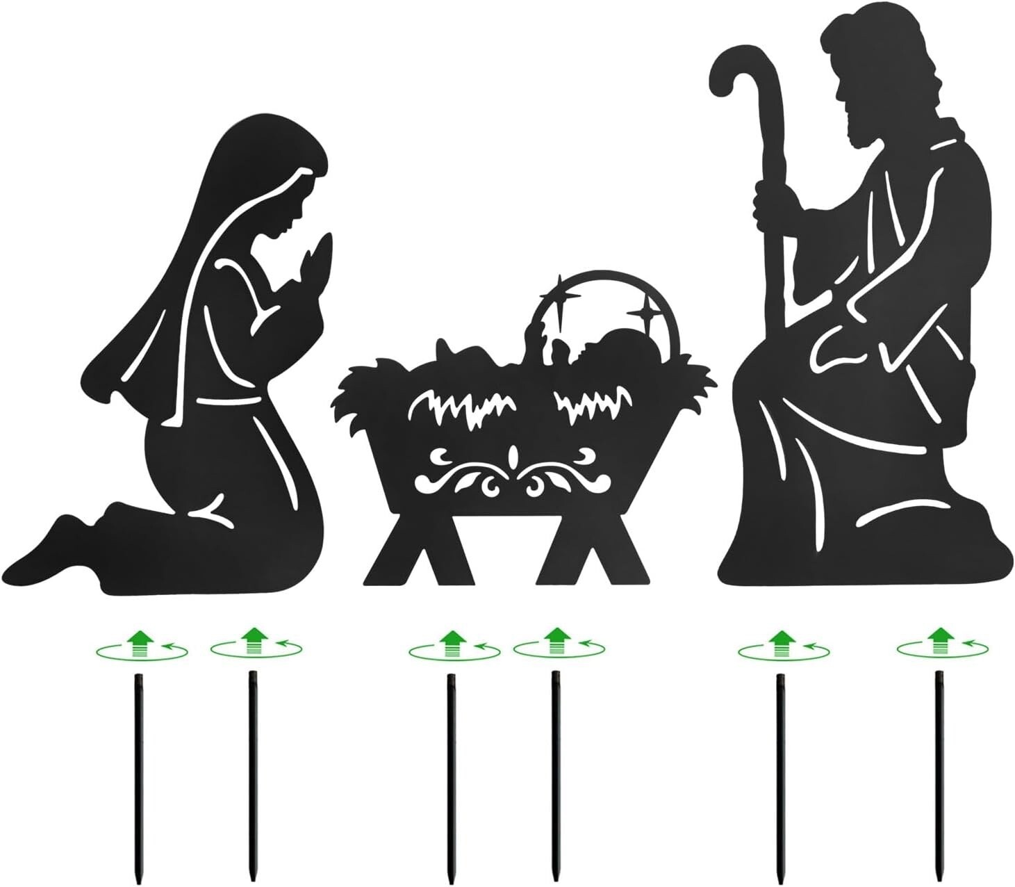 Christmas Yard Stakes Set of 3 Metal Nativity Scene Garden Stakes |