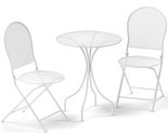 - 3 Piece Metal Bistro Patio Round Table and 2 Folding Chairs Set-White - Color: W
