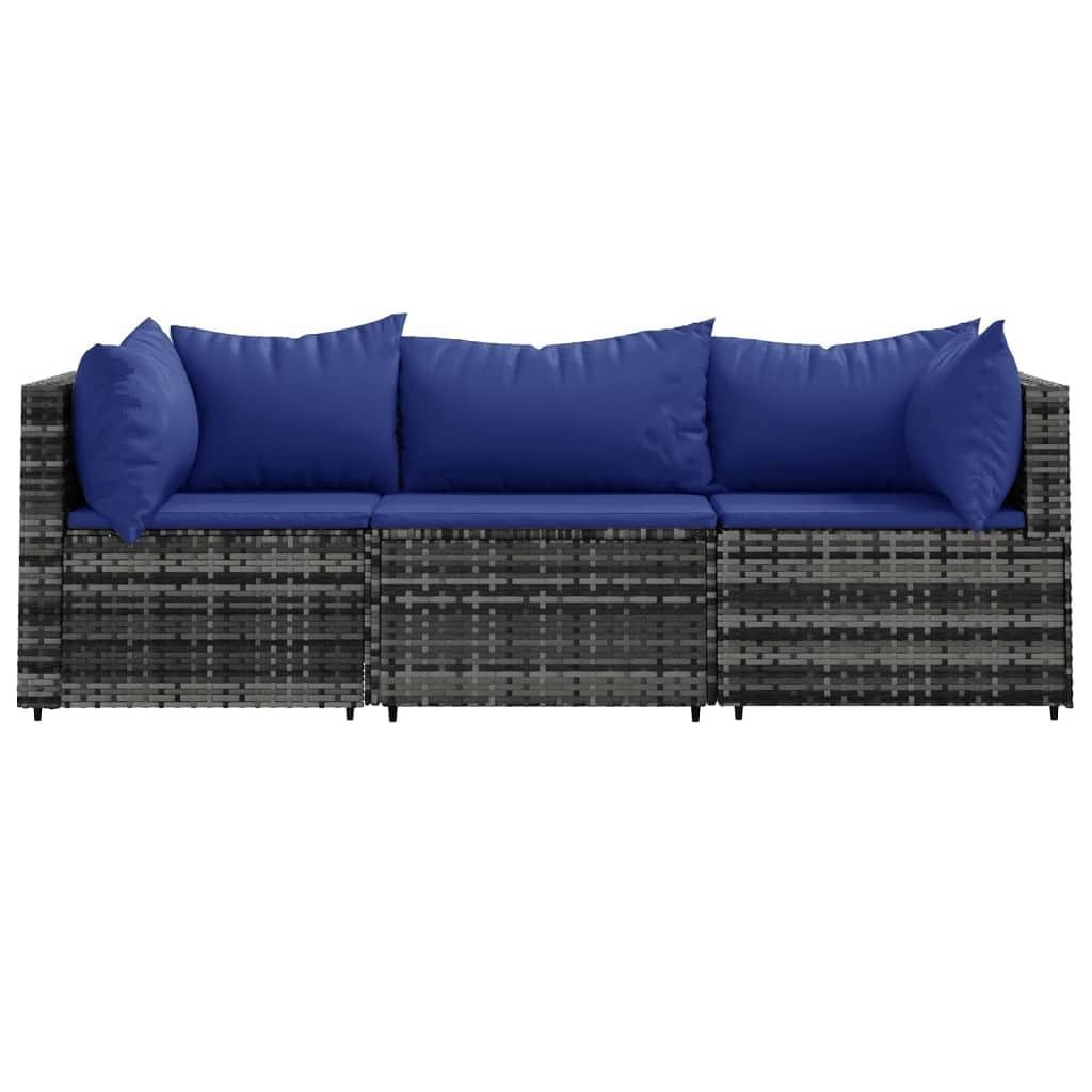 - 3 Piece Patio Lounge Set with Cushions Gray Poly Rattan