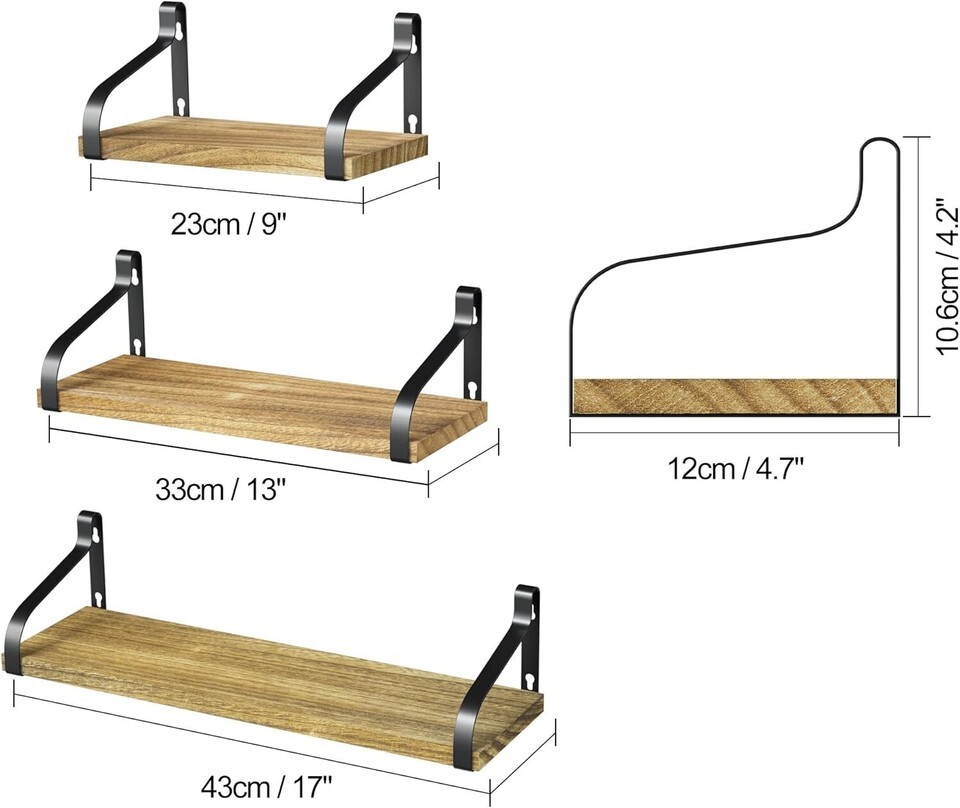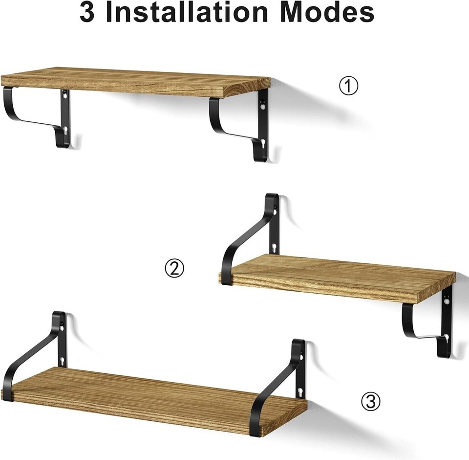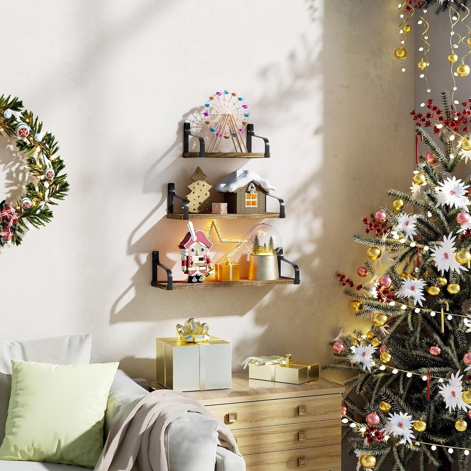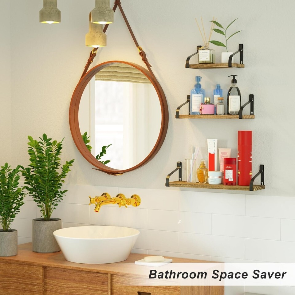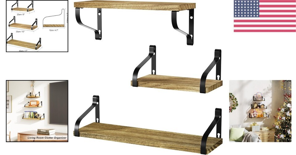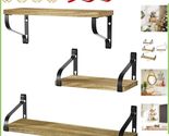 - 3-Piece Rustic Wood Floating Shelf Set - Perfect for Bedroom, Bathroom & Kitchen