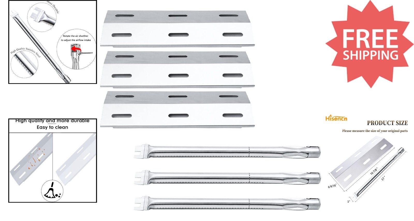 3-Piece Stainless Steel Burner Tube & Heat Plate Set for Ducane Grills