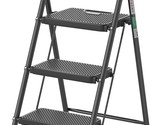 - 3 Step Ladder, RIKADE Folding Step Stool, Step Stool with Wide Anti-Slip Pedal,