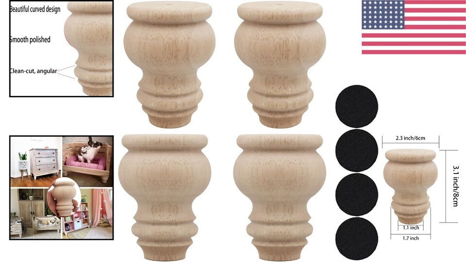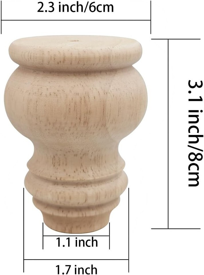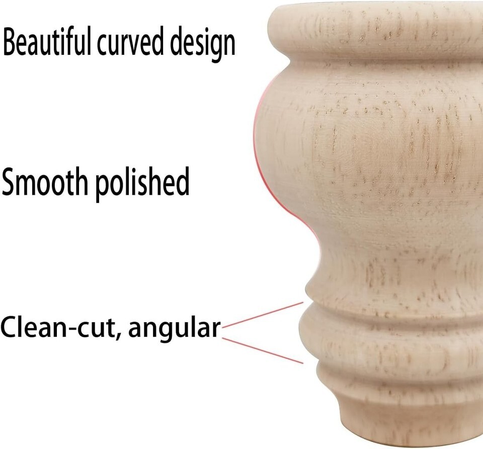 Features: Fixed,Turned,Unfinished,Polished,Easy to install,Includes screws,Includes rubber feet pads