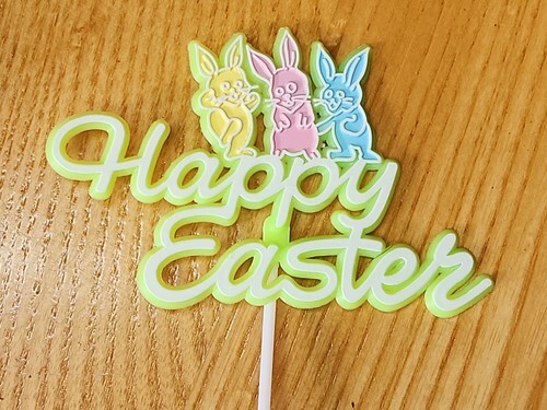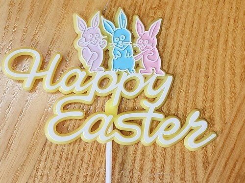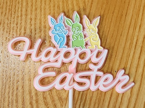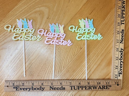 3 Vintage Plastic Pink Purple Yellow EASTER Cake Cupcake PICK TOPPER Bunny