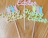 Primary image for 3 Vintage Plastic Pink Purple Yellow EASTER Cake Cupcake PICK TOPPER Bunny