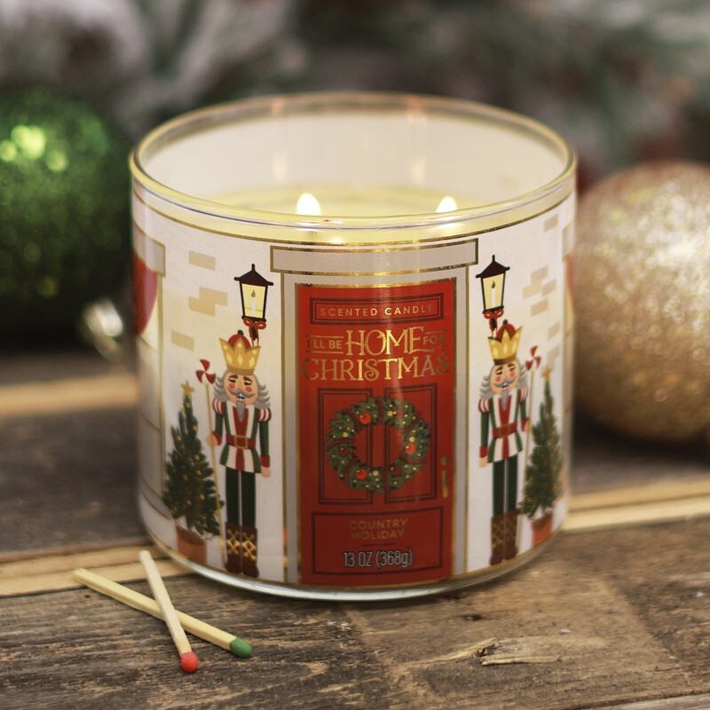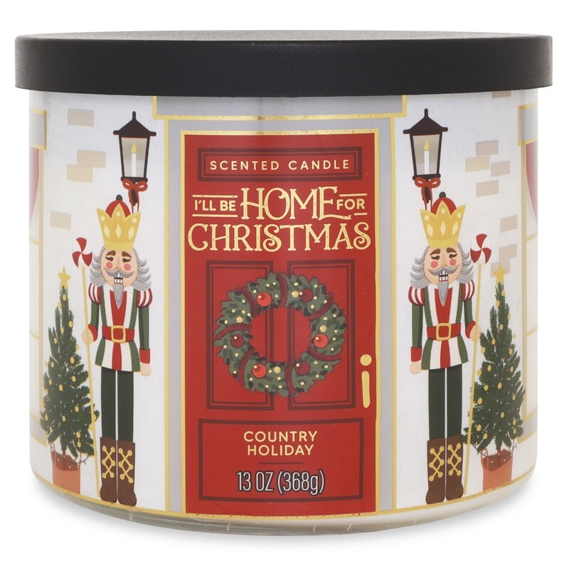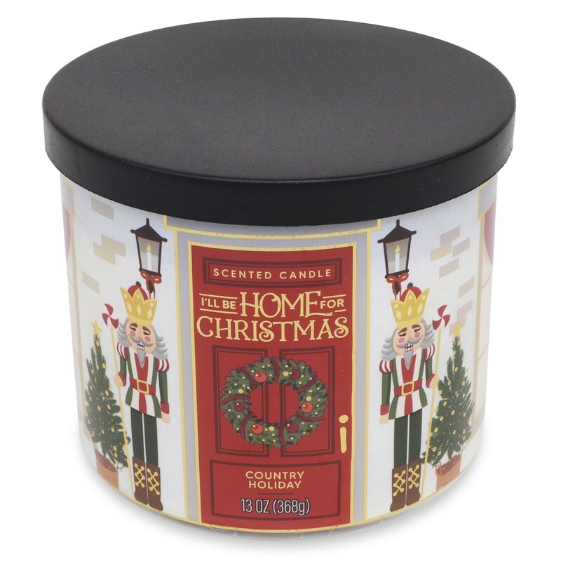 3-Wick Country Holiday Scented Candle with a Nutcracker Scene Wrap, 13-Ounce