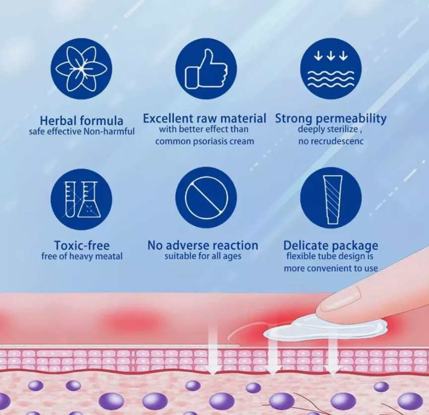 - Suitable for: daily care of psoriasis, mosquito bites, acne, prickly heat, itchy skin, etc.
