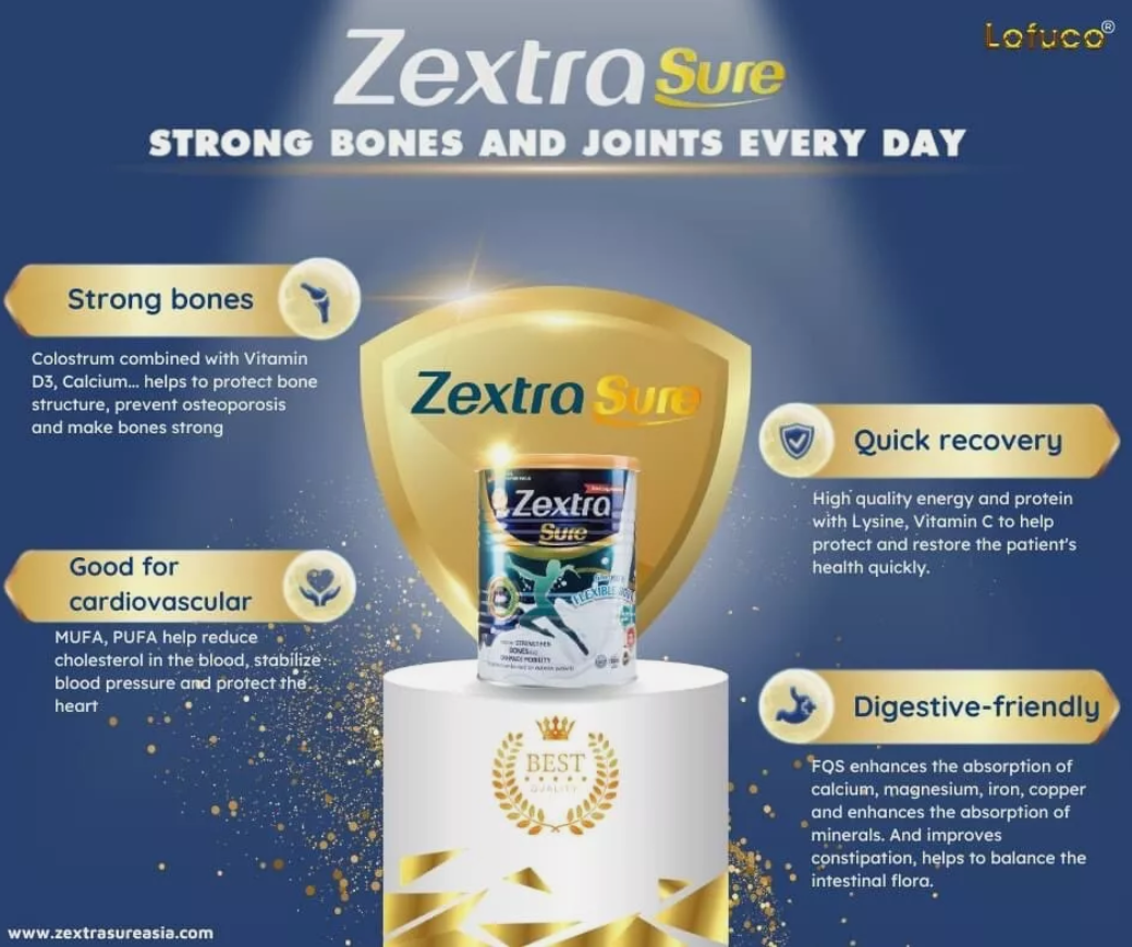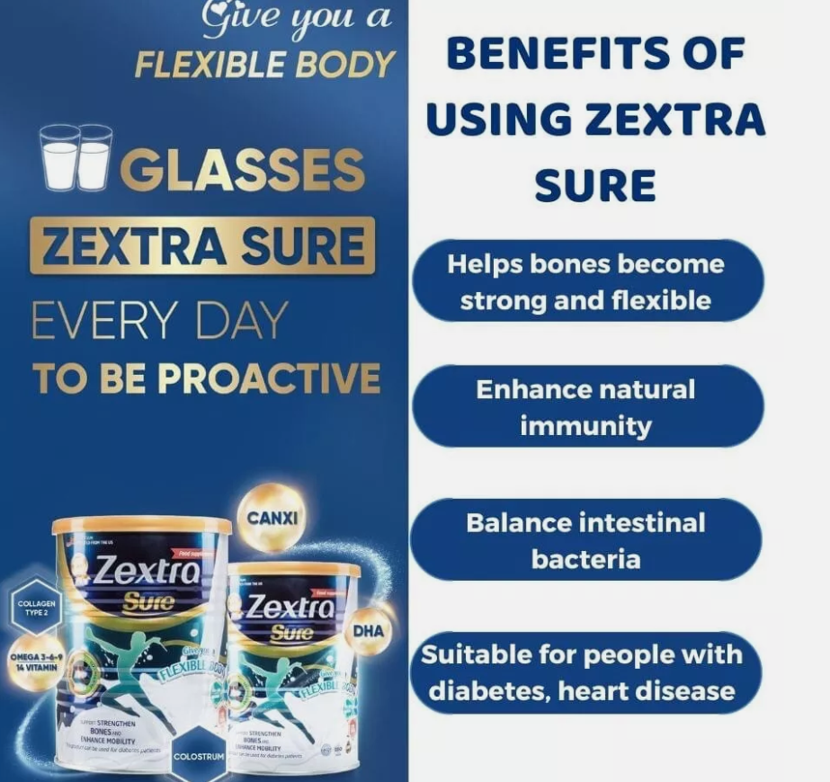 Understanding these concerns, Zextra Sure - a nutritional milk powder imported from the US - was born with the mission of comprehensively caring for your joints, helping you regain flexibility and confidence in every movement.