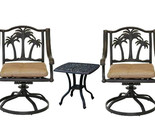 3 piece bistro patio set palm tree cast aluminum end table Chairs Garden Pool deck