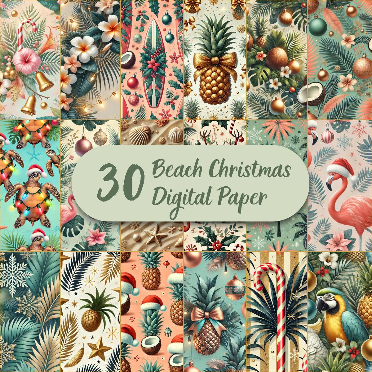 30 Beach Christmas Digital Papers: Tropical Holiday PNG (Digital Download)