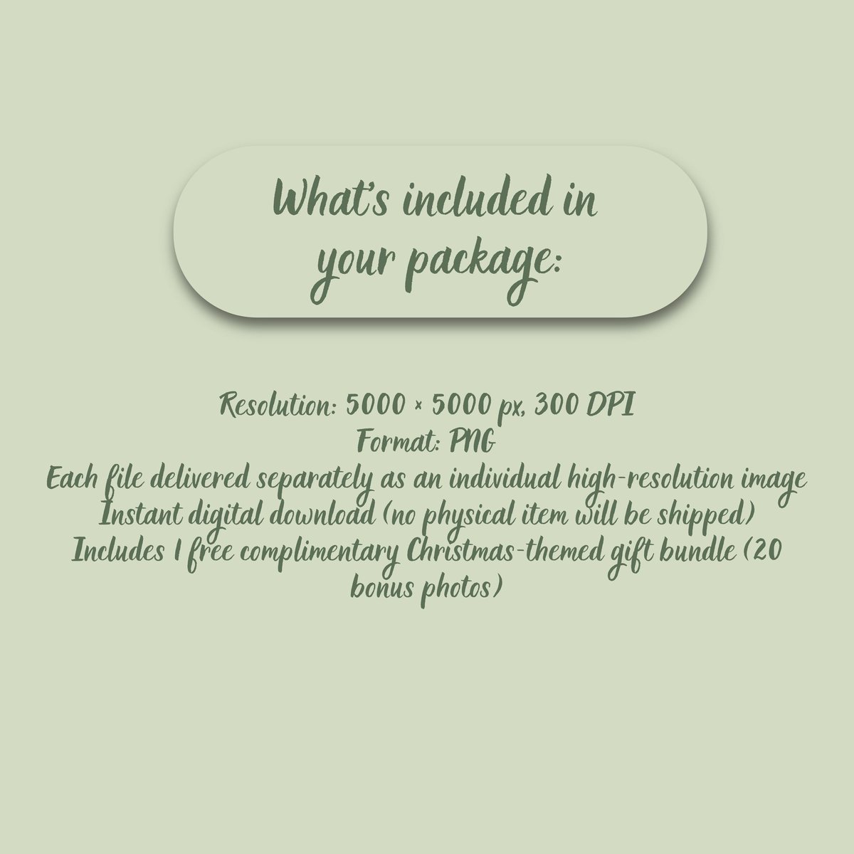 BONUS: 1 complimentary Christmas-themed gift bundle (20 extra high-res images)