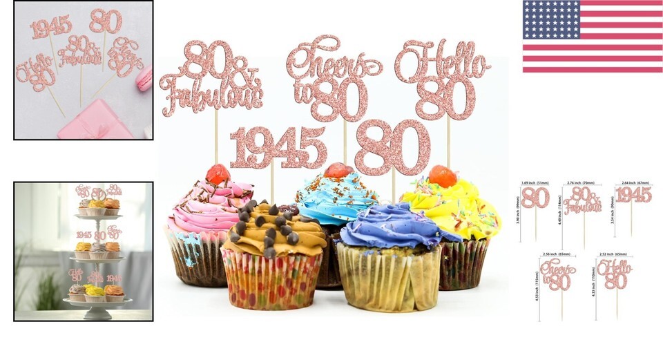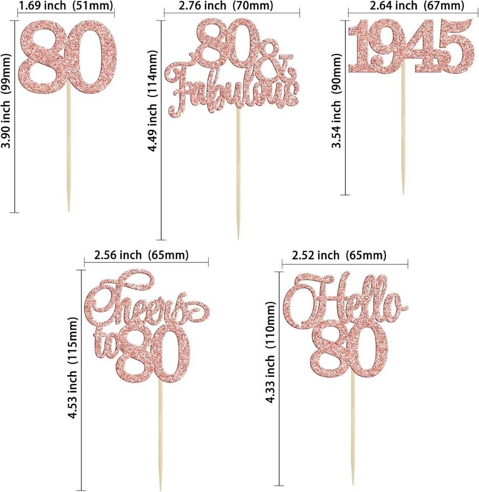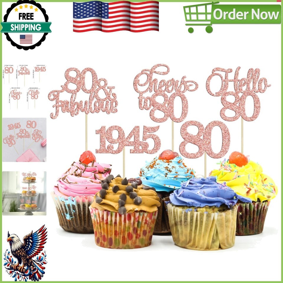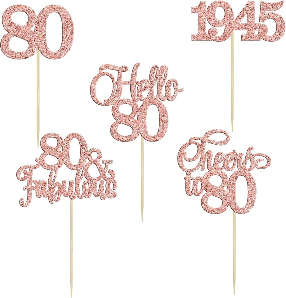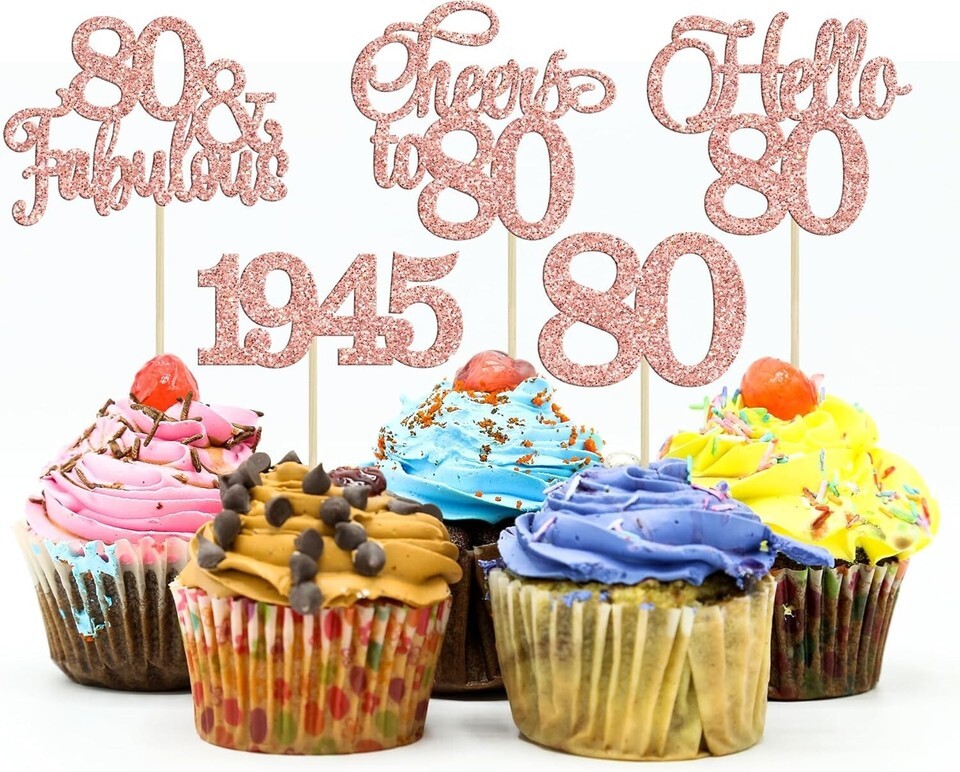 30 Elegant Rose Gold 80th Birthday Cupcake Toppers - Perfect for Celebrations