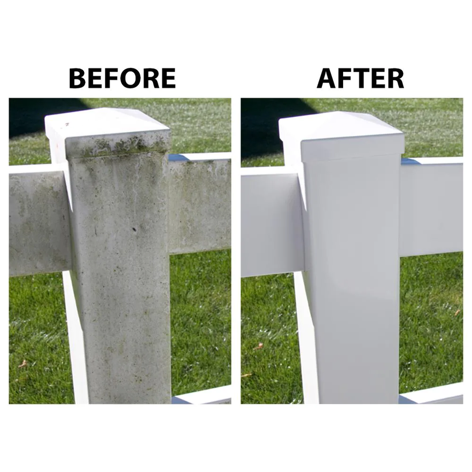 Our outdoor miracle formula contains a proprietary blend of commercial grade bleach and soaps that deep clean