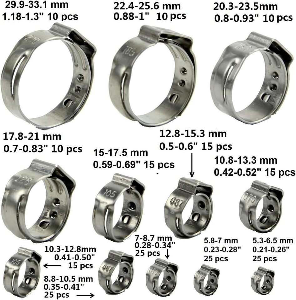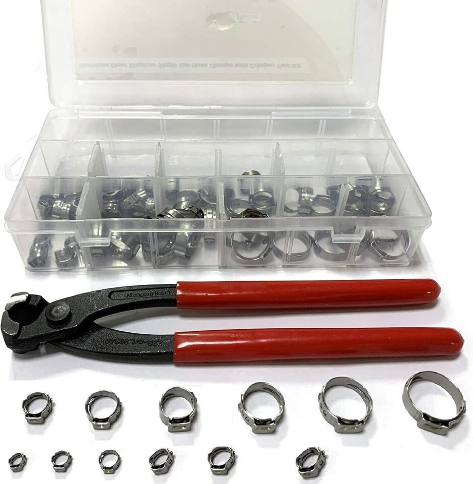 Introducing the ultimate solution for all your clamping needs ? this meticulously crafted set of high precision single ear stepless hose clamps, combined with a durable crimping tool. Perfect for both household and industrial applications, this collection boasts quality, reliability, and ease of use.