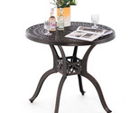 - 31.5 Inch Cast Aluminum Table Patio Round Dining Table with Umbrella Hole-Copper