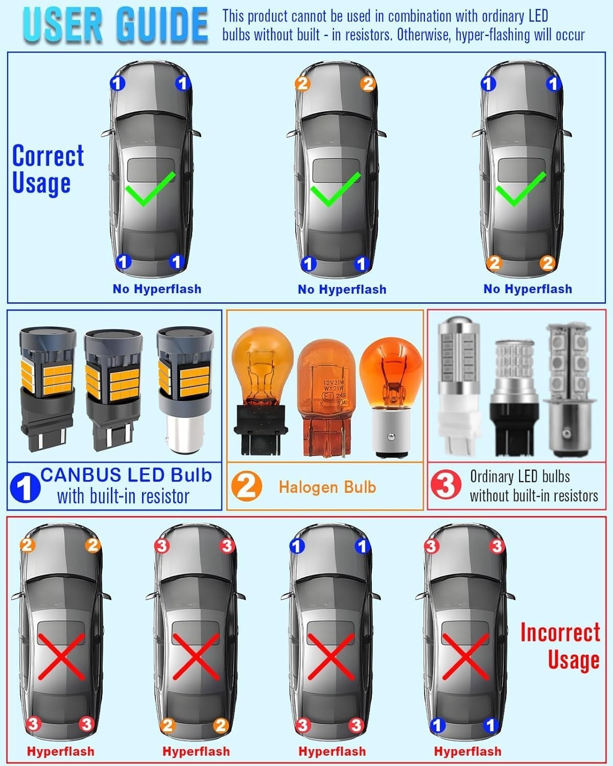 - 3157 LED Turn Signal Bulb Anti Hyper Flash,3057 LED Bulbs With 3156/3157 Amber