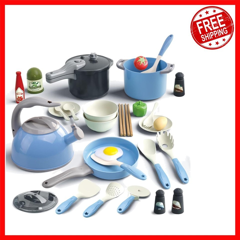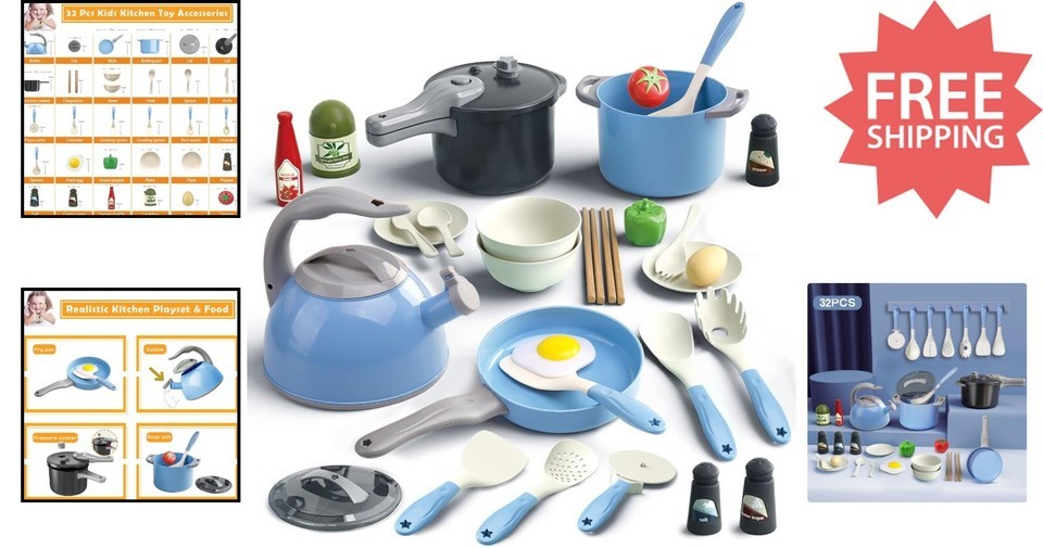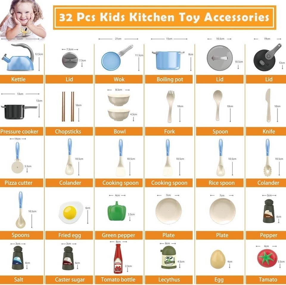 - 32-Piece Kids Play Kitchen Set - Safe Pretend Cooking Toys for Creative Learning