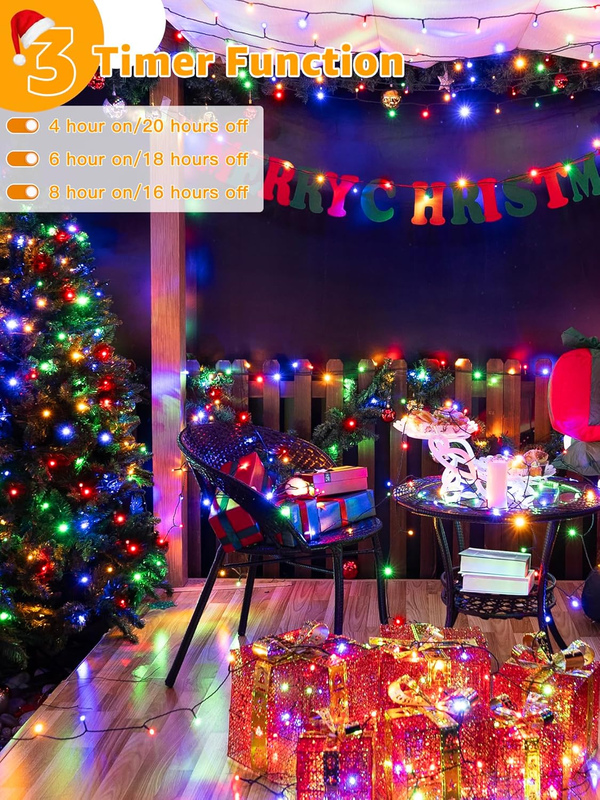 Timer Memory Function: The LED Christmas lights features 3 timer function; 4 hrs on 20 hrs off; 6 hrs on 18 hrs off; 8 hrs on 16 hrs off; The memory mode will save the previous settings