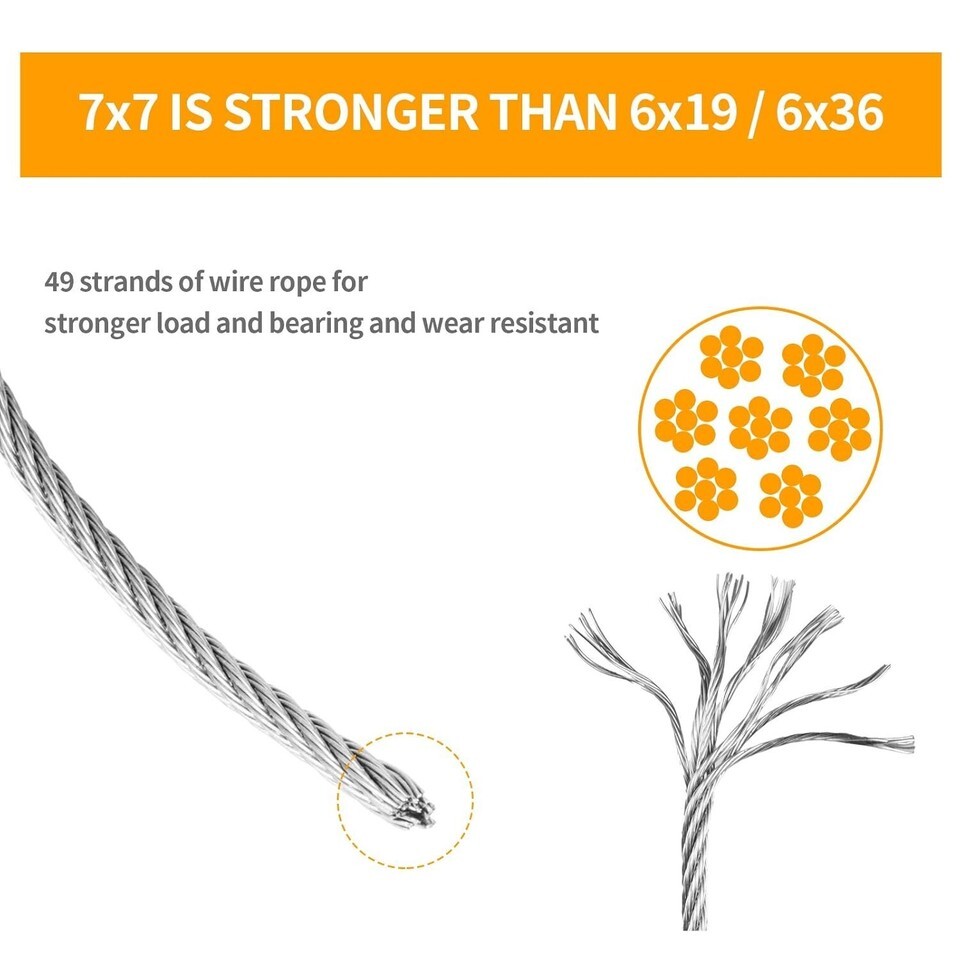 33 FT Marine Grade 316 Stainless Steel Cable 1/16" with 50 Sleeves 12 Thimbles ? ? ? ? ? ? ? ? ? ? ? ? ? ? ? ? ? ? ? ? ? ? 33 FT Marine Grade 316 Stainless Steel Cable Upgrade your projects with this versatile and durable 33 FT Marine Grade 316 Stainless Steel Cable, designed for maximum strength and resilience against the elements. Product Features: Exceptional Durability: Crafted from marine grade 316 stainless steel, this cable is resistant to rust and corrosion, ensuring longevity even in harsh environments. Optimal Dimensions: With a diameter of just 1/16 inch and a length of 33 FT, this cable is perfectly sized for a variety of applications. Robust Construction: Featuring a 7x7 strand core, this cable boasts a working load limit of 92 lbs and a remarkable breaking strength of 368 lbs. Comprehensive Package: Each set includes 50 aluminum sleeves and 12 thimbles, providing everything you need for secure and reliable connections. Versatile Applications: Garden wire cable for supporting plants Lighting cable for hanging decorative lights from tree to tree Perfect for picture hanging in your home or office Railing and decking installations Tether lines and winches for marine and outdoor needs Essential marine boat hardware for secure rigging Why Choose This Stainless Steel Cable? Imagine the peace of mind knowing your projects are supported by a robust and reliable cable. Whether you're hanging beautiful lights for an outdoor event, constructing secure railings, or creating tethering solutions for your boat, this 33 FT Stainless Steel Cable will meet your demands effortlessly. Its anti-rust properties ensure it stands the test of time, giving you both utility and elegance in every application. Don?t settle for less. Elevate your projects with our Marine Grade Stainless Steel Cable?order yours today! Shipping Free Fast Shipping - We offer free shipping to most of the USA with a normal delivery time of 3-7 days. However, due to the current situation, additional delivery time (up to 3 weeks) may be required for some items. Alternative Carriers - We may use alternative carriers (e.g. USPS, FedEx, UPS, etc.) to ensure your package arrives safely and on time. Due to the use of multiple carriers, we are unable to provide a tracking number automatically. Handling Time - Orders are processed and shipped within 1-2 business days of receiving cleared payment. Shipping Restrictions - Shipping to Alaska, Hawaii, Puerto Rico, Guam, and other US territories may incur shipping charges or delivery restrictions. Please contact us before ordering, or your order can be refunded/cancelled. State Restrictions - There may be restrictions based on your state of purchase. For example, certain items may not be shipped to California due to state regulations. Contact for Tracking Updates - If you require tracking updates or have any concerns about the delivery of your order, please feel free to contact us, and we will be happy to assist you. Return 30-Day Hassle-Free Returns - We want you to be completely satisfied with your purchase. If you are not, you can return the item within 30 days of receiving it for a full refund or exchange. Easy Return Process - To start a return, simply contact us and we will provide you with a prepaid return shipping label and detailed instructions. Restocking Fee - There are no restocking fees for returns. However, the buyer is responsible for return shipping costs if the return is not due to a seller's error. Refund Processing Time - Refunds will be processed within 5 business days of receiving the returned item in its original condition. Payment We accept all major credit cards, PayPal, and Apple Pay for your convenience. Your payment information is secure and encrypted to ensure a safe and seamless transaction. Please complete your payment within 3 days of purchase to avoid any delays in shipping. Feedback Your feedback is extremely important to us. We strive to provide the best products and customer service possible. If you are satisfied with your purchase, please take a moment to leave us a positive review. If you have any concerns or issues with your order, please contact us before leaving negative feedback. We are committed to resolving any problems and ensuring your satisfaction. Contact Us If you have any questions or concerns, please feel free to reach out to our customer support team. You can contact us through the messaging system. We are available Monday to Friday, 9:00 am to 5:00 pm EST, and we will do our best to respond to your inquiry within 24 hours. Buy it now and enjoy a pleasant shopping experience! UPC: Not Set Model: Stainless Steel Cable Rope MPN: Stainless_Steel_Cable_Rope Unit Quantity: 33 Brand: Unbranded Country/Region of Manufacture: Not Set Unit Type: ft