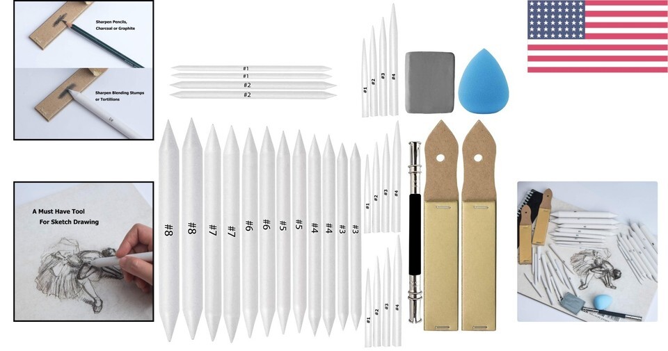 33-Piece Artist Blending Stumps Tortillions Set for Perfect Sketch Techniques ? ? ? ? ? ? ? ? ? ? ? ? ? ? ? ? ? ? 33-Piece Artist Blending Stumps Tortillions Set Perfect your sketch techniques with our comprehensive set designed for artists of all levels. This luxurious 33-piece collection provides the essential tools you need to bring your artistic visions to life. What?s Included: 16 blending stumps in assorted sizes (#1 to #8, 2 pieces of each) for versatile blending capabilities. 12 tortillions in various sizes (#1 to #4, 3 pieces of each) for precise work and detailed techniques. 2 sandpaper sharpen pads to maintain the points of your blending tools. 1 pencil extension tool for comfortably extending the reach of your medium. 1 kneaded eraser for creating smooth transitions and highlights. 1 rub sponge in blue to enhance softening techniques in your artwork. High-Quality Craftsmanship: Each blending stump and tortillion is crafted from premium soft compressed gray paper, allowing for effective smudging, shadow creation, line softening, and overall blending. Whether you are working with pastels, charcoal, chalk, or pencils, these tools promise exceptional craftsmanship for smooth, professional results. Advantages for Artists: Freedom to explore various techniques and styles thanks to the multi-size offerings. Effortlessly sharpen all tools with included sandpaper pads to ensure precision in every stroke. Kneaded eraser allows for customizable shapes, ensuring highlights and light surfaces are achieved effortlessly. Perfect for artists, students, and hobbyists alike, this set caters to every aspect of sketching and blending. Why Choose Our Blending Set? Create stunning artwork with our 33-Piece Artist Blending Stumps Tortillions Set, designed to elevate your sketching experience. With an array of tools that blend harmoniously, you?ll be able to take your artistry to the next level, achieving textures and effects that captivate. Whether you are perfecting your craft or exploring new techniques, this set is a must-have for every artist's toolkit. Unlock your potential and order your set today! Shipping Free Fast Shipping - We offer free shipping to most of the USA with a normal delivery time of 3-7 days. However, due to the current situation, additional delivery time (up to 3 weeks) may be required for some items. Alternative Carriers - We may use alternative carriers (e.g. USPS, FedEx, UPS, etc.) to ensure your package arrives safely and on time. Due to the use of multiple carriers, we are unable to provide a tracking number automatically. Handling Time - Orders are processed and shipped within 1-2 business days of receiving cleared payment. Shipping Restrictions - Shipping to Alaska, Hawaii, Puerto Rico, Guam, and other US territories may incur shipping charges or delivery restrictions. Please contact us before ordering, or your order can be refunded/cancelled. State Restrictions - There may be restrictions based on your state of purchase. For example, certain items may not be shipped to California due to state regulations. Contact for Tracking Updates - If you require tracking updates or have any concerns about the delivery of your order, please feel free to contact us, and we will be happy to assist you. Return 30-Day Hassle-Free Returns - We want you to be completely satisfied with your purchase. If you are not, you can return the item within 30 days of receiving it for a full refund or exchange. Easy Return Process - To start a return, simply contact us and we will provide you with a prepaid return shipping label and detailed instructions. Restocking Fee - There are no restocking fees for returns. However, the buyer is responsible for return shipping costs if the return is not due to a seller's error. Refund Processing Time - Refunds will be processed within 5 business days of receiving the returned item in its original condition. Payment We accept all major credit cards, PayPal, and Apple Pay for your convenience. Your payment information is secure and encrypted to ensure a safe and seamless transaction. Please complete your payment within 3 days of purchase to avoid any delays in shipping. Feedback Your feedback is extremely important to us. We strive to provide the best products and customer service possible. If you are satisfied with your purchase, please take a moment to leave us a positive review. If you have any concerns or issues with your order, please contact us before leaving negative feedback. We are committed to resolving any problems and ensuring your satisfaction. Contact Us If you have any questions or concerns, please feel free to reach out to our customer support team. You can contact us through the messaging system. We are available Monday to Friday, 9:00 am to 5:00 pm EST, and we will do our best to respond to your inquiry within 24 hours. Buy it now and enjoy a pleasant shopping experience! UPC: Not Set Model: Art Drawing Tools Set MPN: Art_Drawing_Tools_Set Unit Quantity: 8.1 Color Style: Multicolor,Blue,Assorted,Grey,Charcoal Type: Pencil Brand: Unbranded Product Line: Not Set Color: Blue Hardness: Not Set Lead Size: Not Set Country/Region of Manufacture: Not Set Unit Type: oz Handmade: Not Set