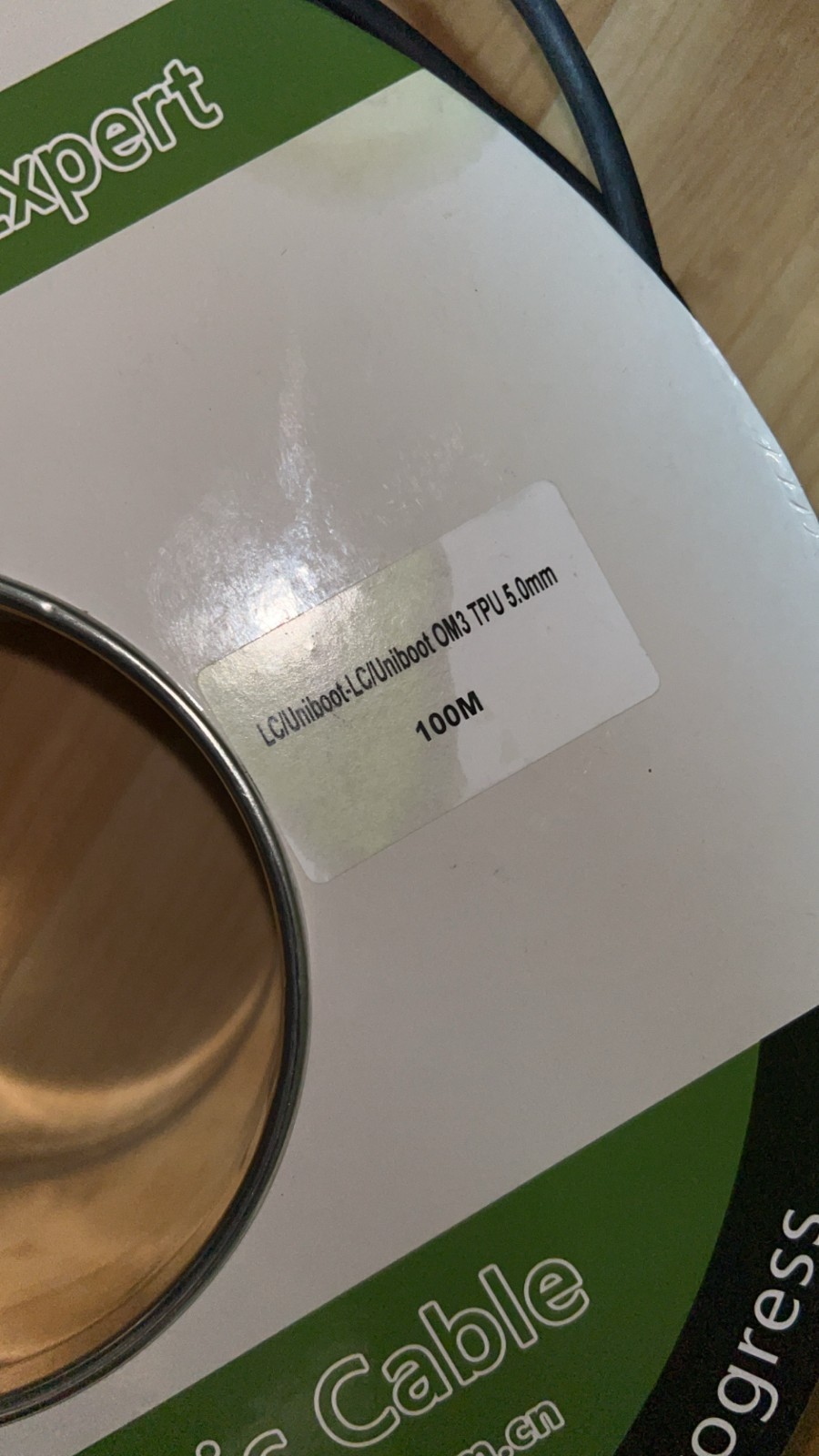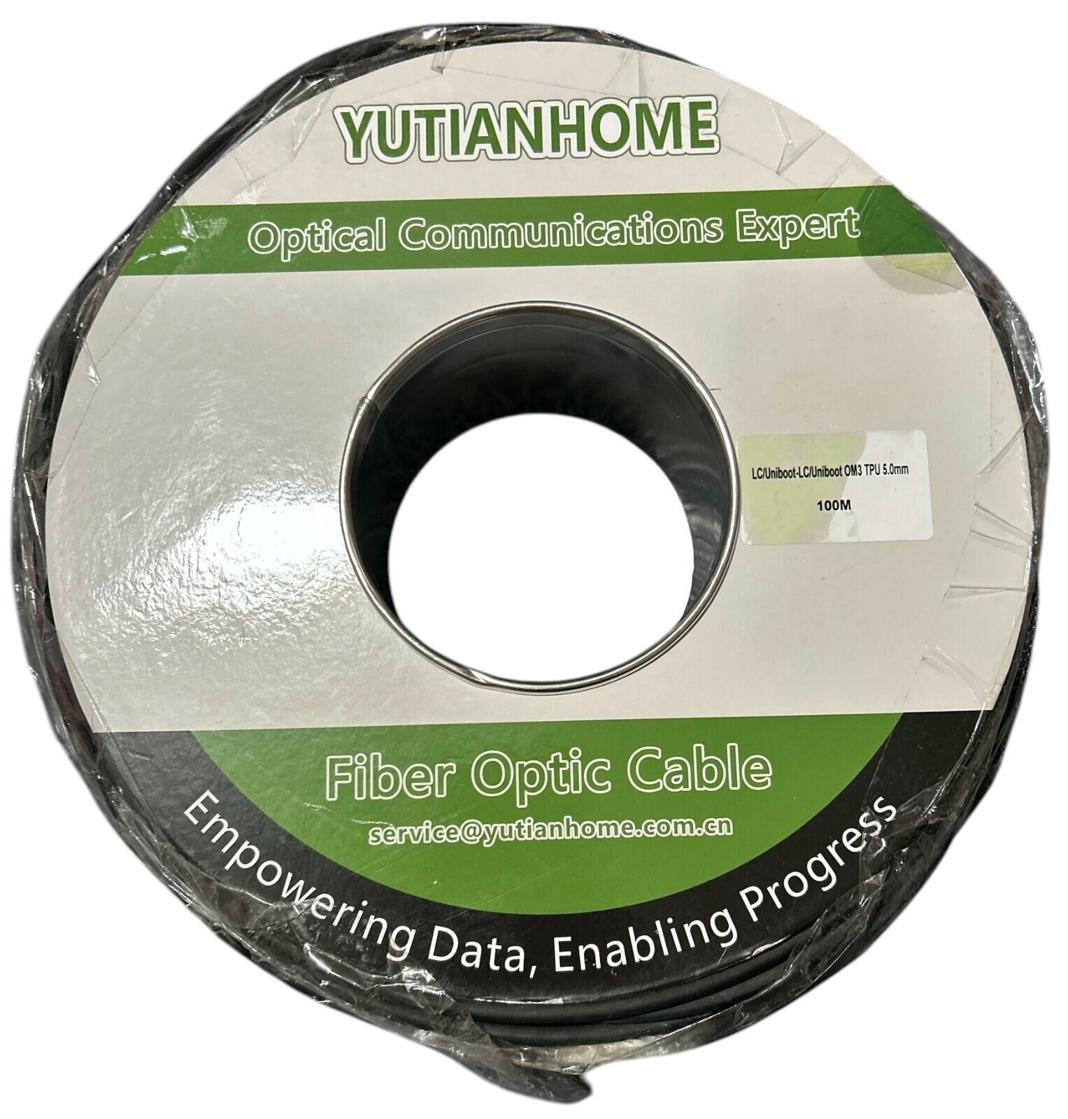 - 330ft/100m OD-5mm Industrial TPU OM3 Fiber Optic Uniboot LC to LC Outdoor *Read*