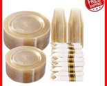 - 350-Piece Gold Glitter Party Set - Dinner Plates, Napkins & Cups for 50 Guests