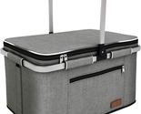 35L Large Picnic Basket 2 Layers of Internal Pockets Leak-Proof and Insulated , Folding with Internal Support for Enhansed Stability, Wedding Gifts for Couple(Grey)