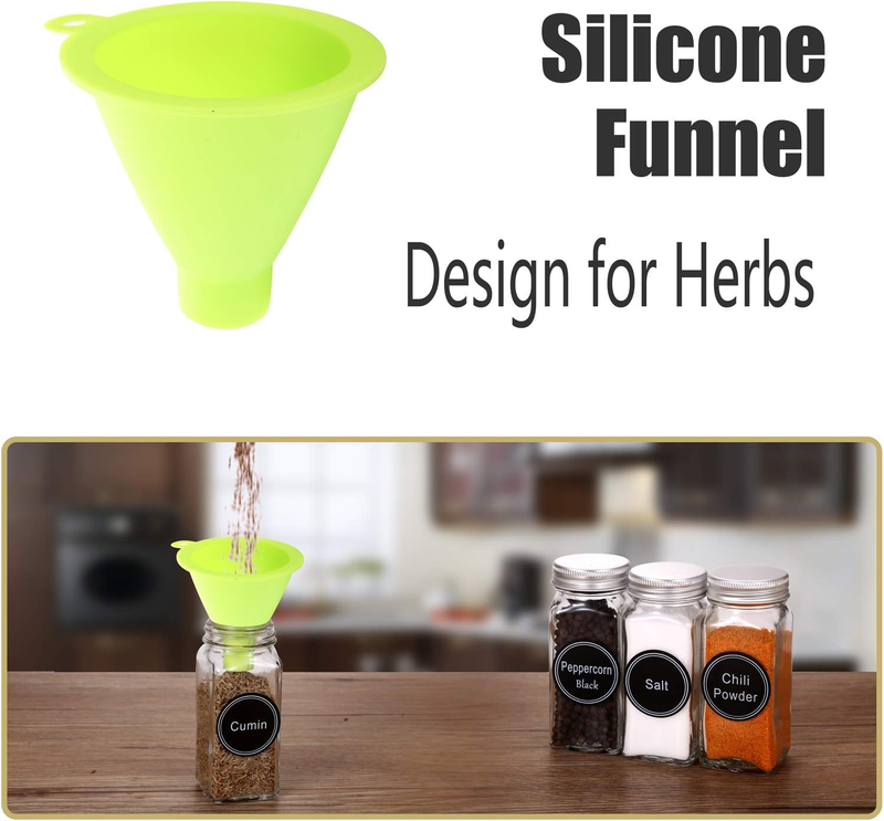 1 chalk marker, 1 silicone funnel, 36 glass spice jars with shake |