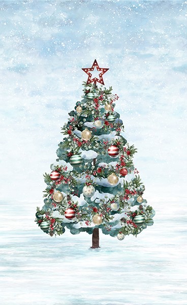 36" X 44" Panel Cozy Tidings Christmas Tree Ornaments Winter Snow Season Hoffman California Fabrics Cotton Fabric Panel (X5597-307-SNOW)