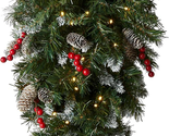 36 in Pre-Lit Frosted Berry Artificial Christmas Teardrop, Christmas Decoration with Pinecones, Red Berries, 50 Clear LED Lights, 147 Tips, Timer, Green