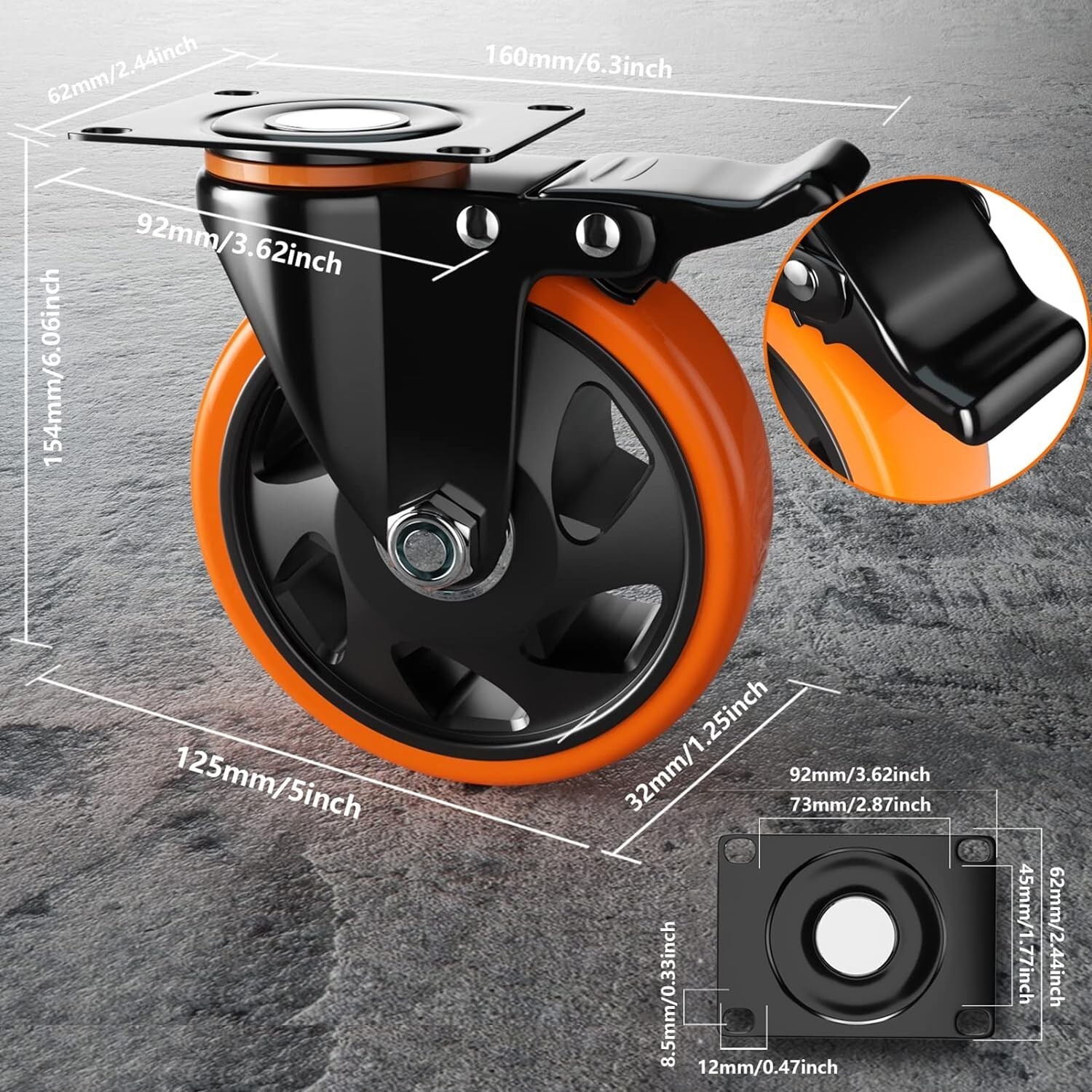360-Degree Locking Swivel Caster Wheels - 5-Inch Set for Furniture & Workbenches