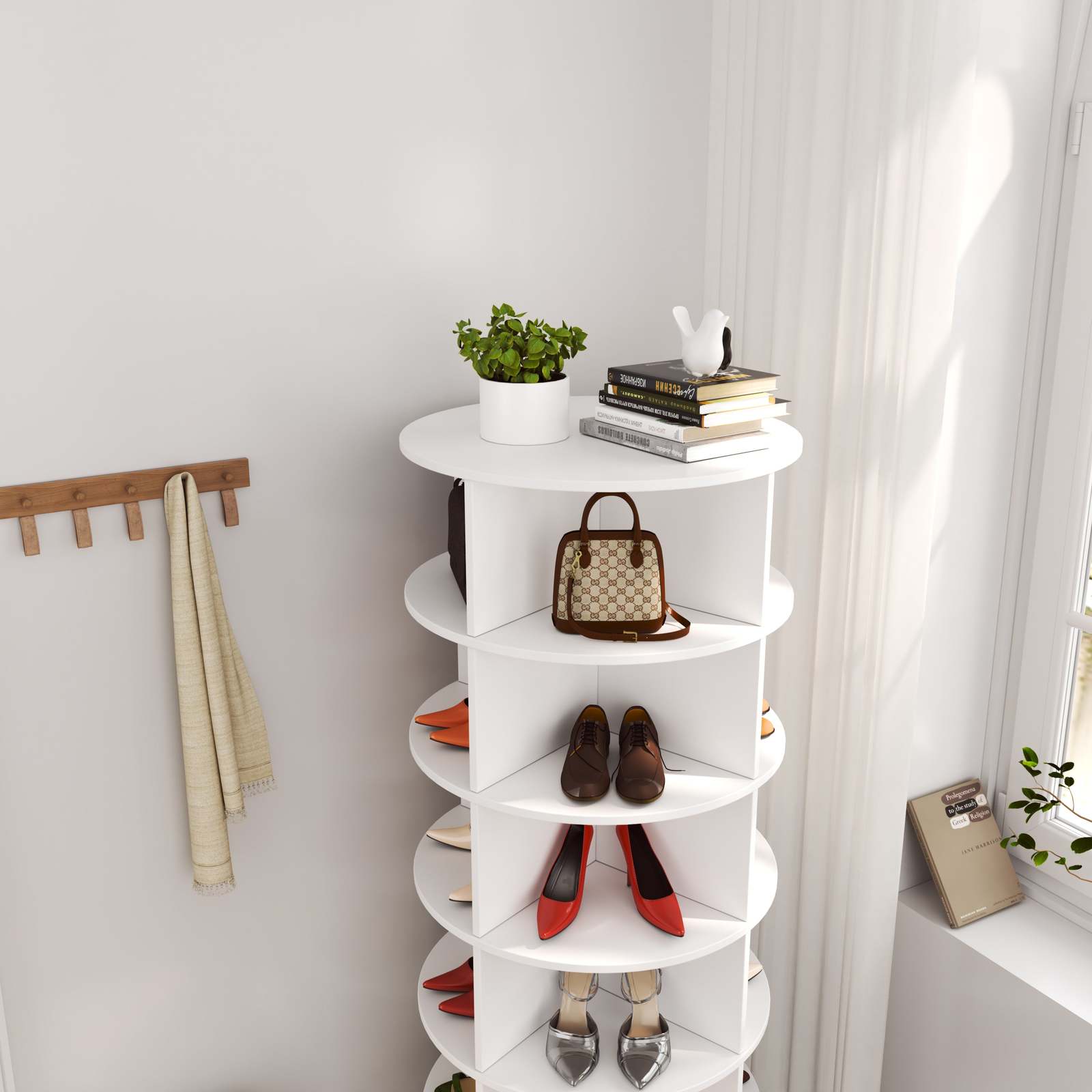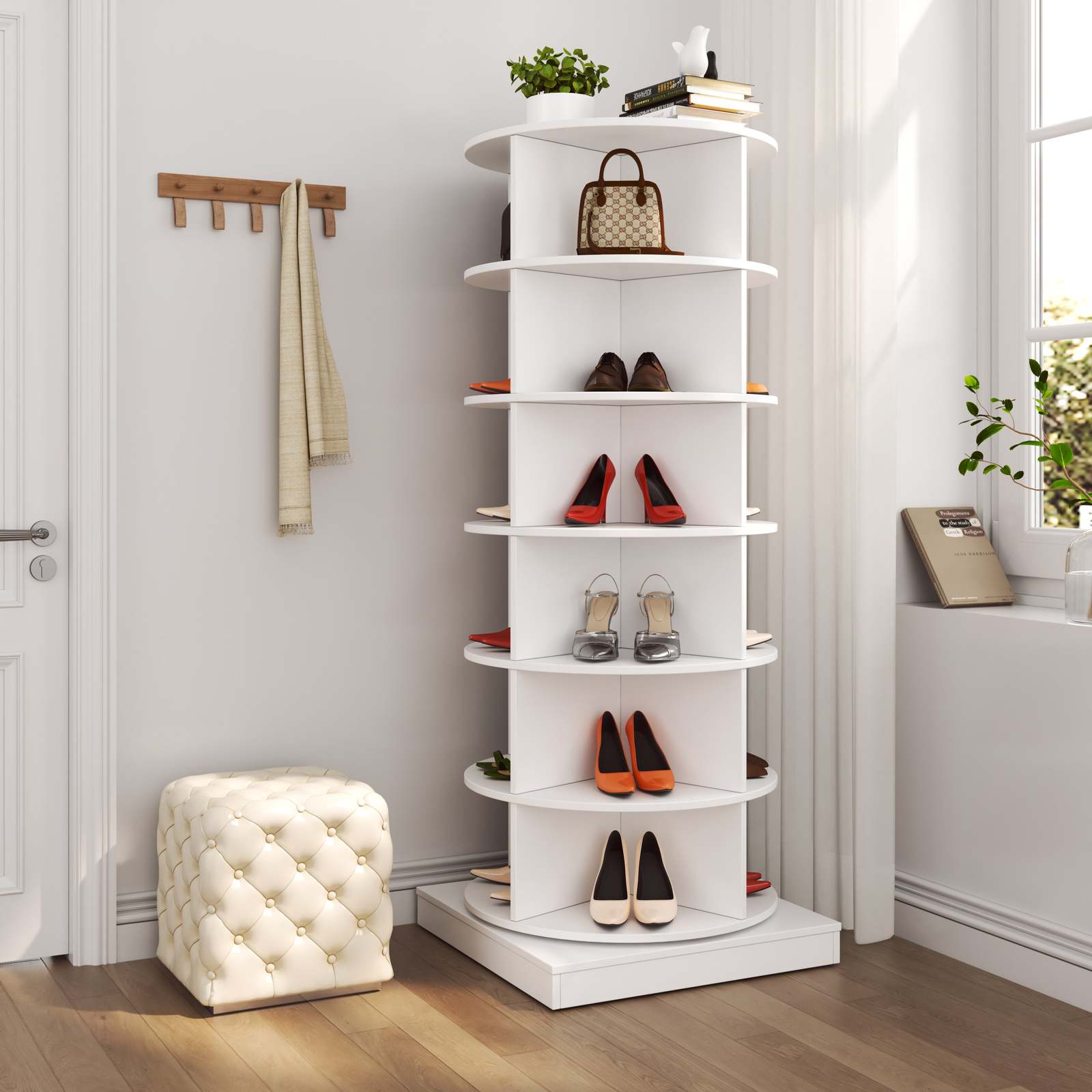 - 360 Rotating Shoe Cabinet - Modern White 6-Tier Storage Solution