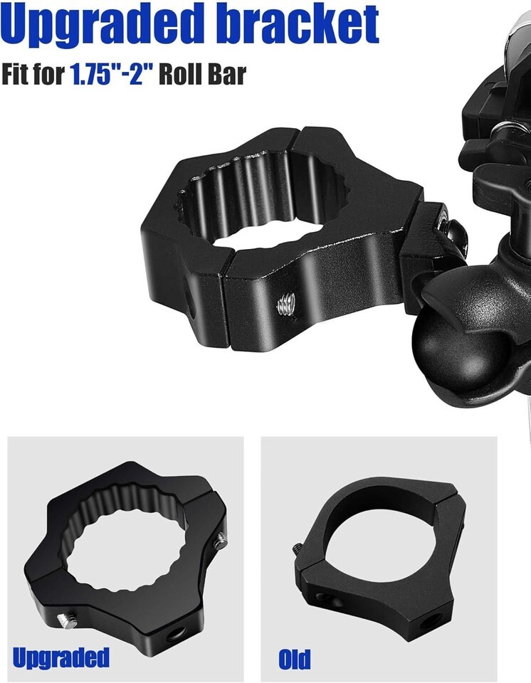 Constructed with a premium aluminum alloy bracket that clings securely to 1.75-2? roll bars.