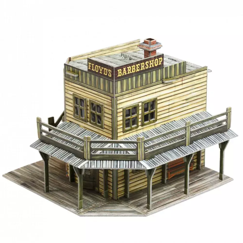 - 3D Cardboard Barbershop Puzzle – Wild West DIY Model for Collectors and Kids